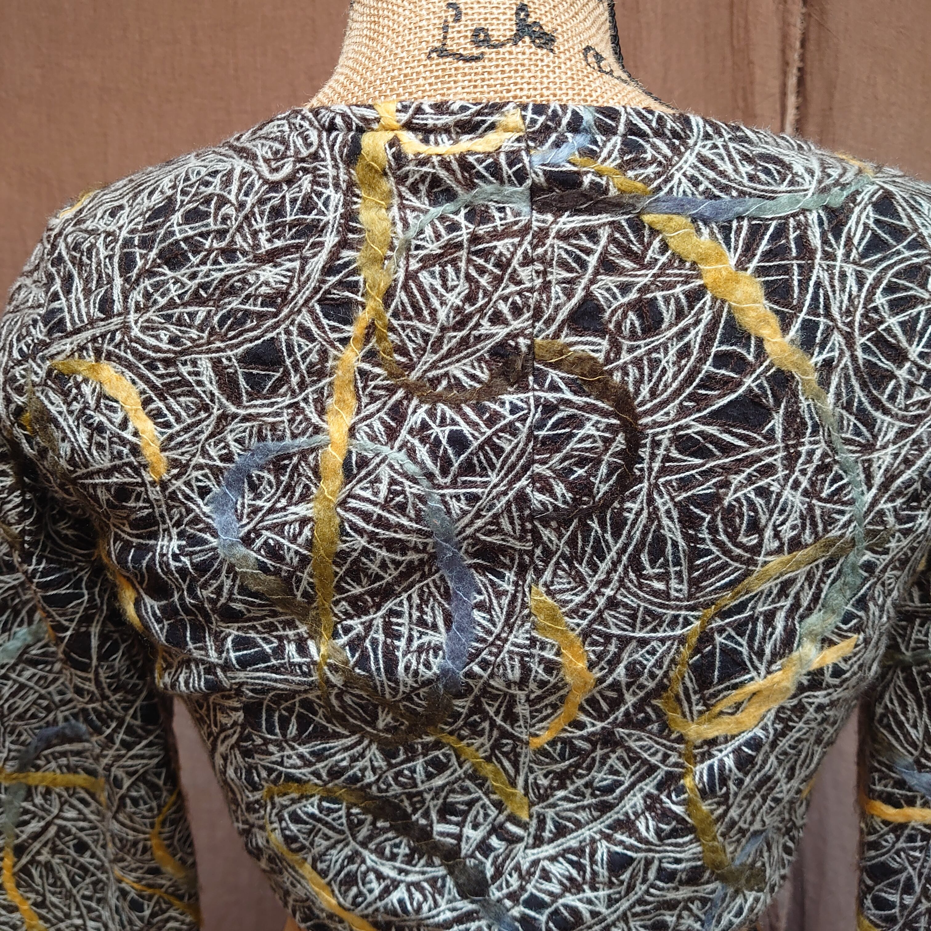 ユニークなデザインと高いファッション性が魅力のハンドメイドボレロです。絶妙な丈感がコーディネートに個性的なアクセントを加えてくれます。