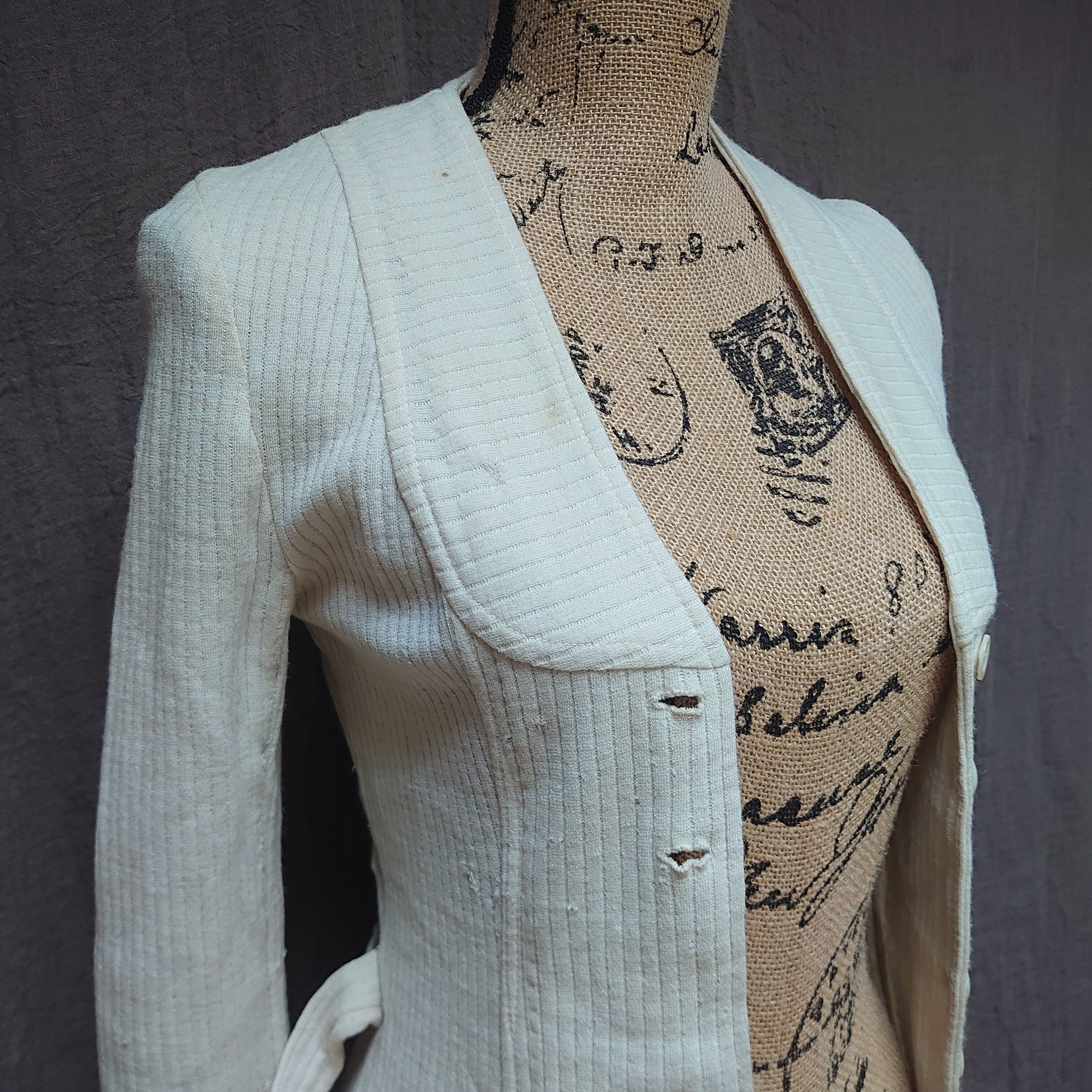 1920's フランス ウールコットンリブニット カーディガン 白色