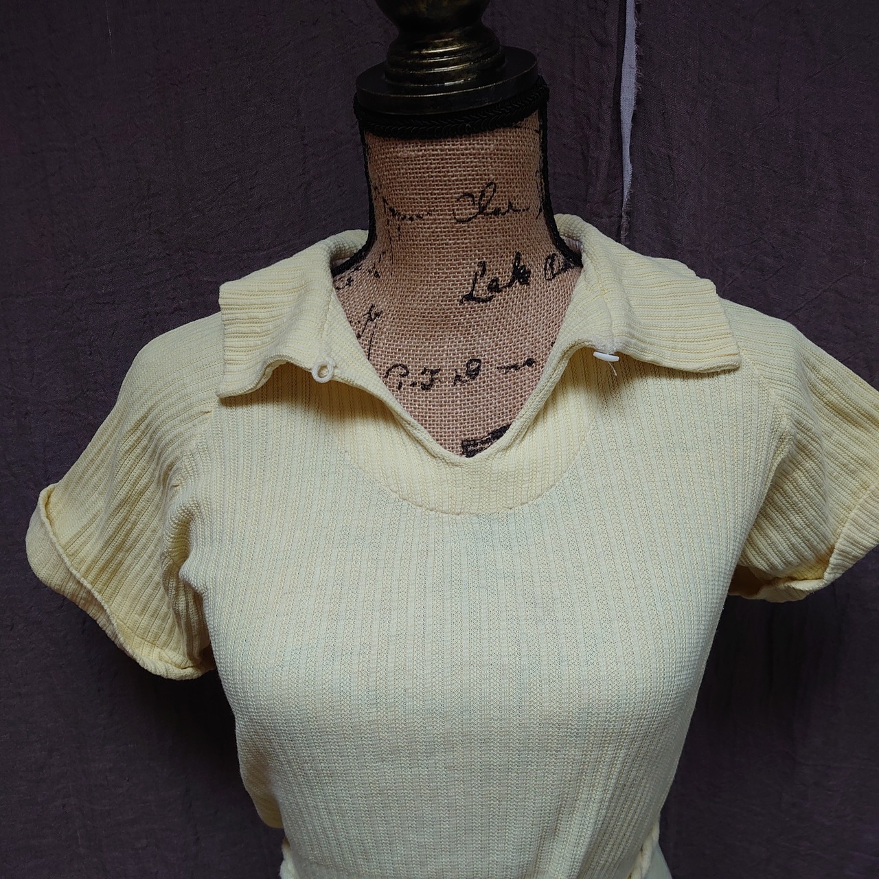 1930's フランス ヴィンテージ トップス リブ生地 レモン色 sportswear