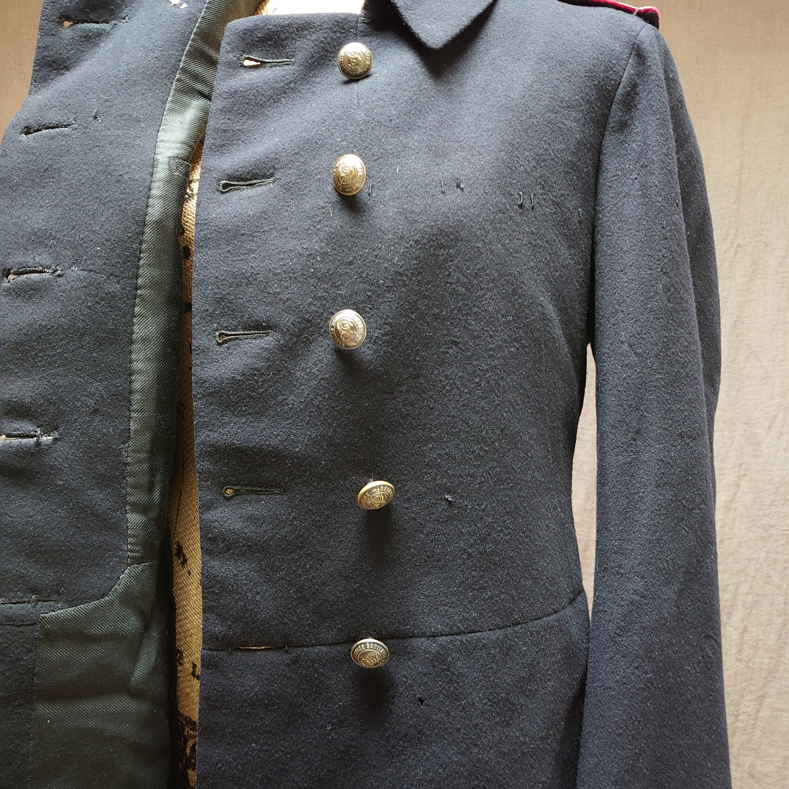 フランス海軍の、主に後方支援を行う衛生隊が着用していたコートです。肩章があるので、士官などの地位の高い人が着るオフィサーコートかもしれません。