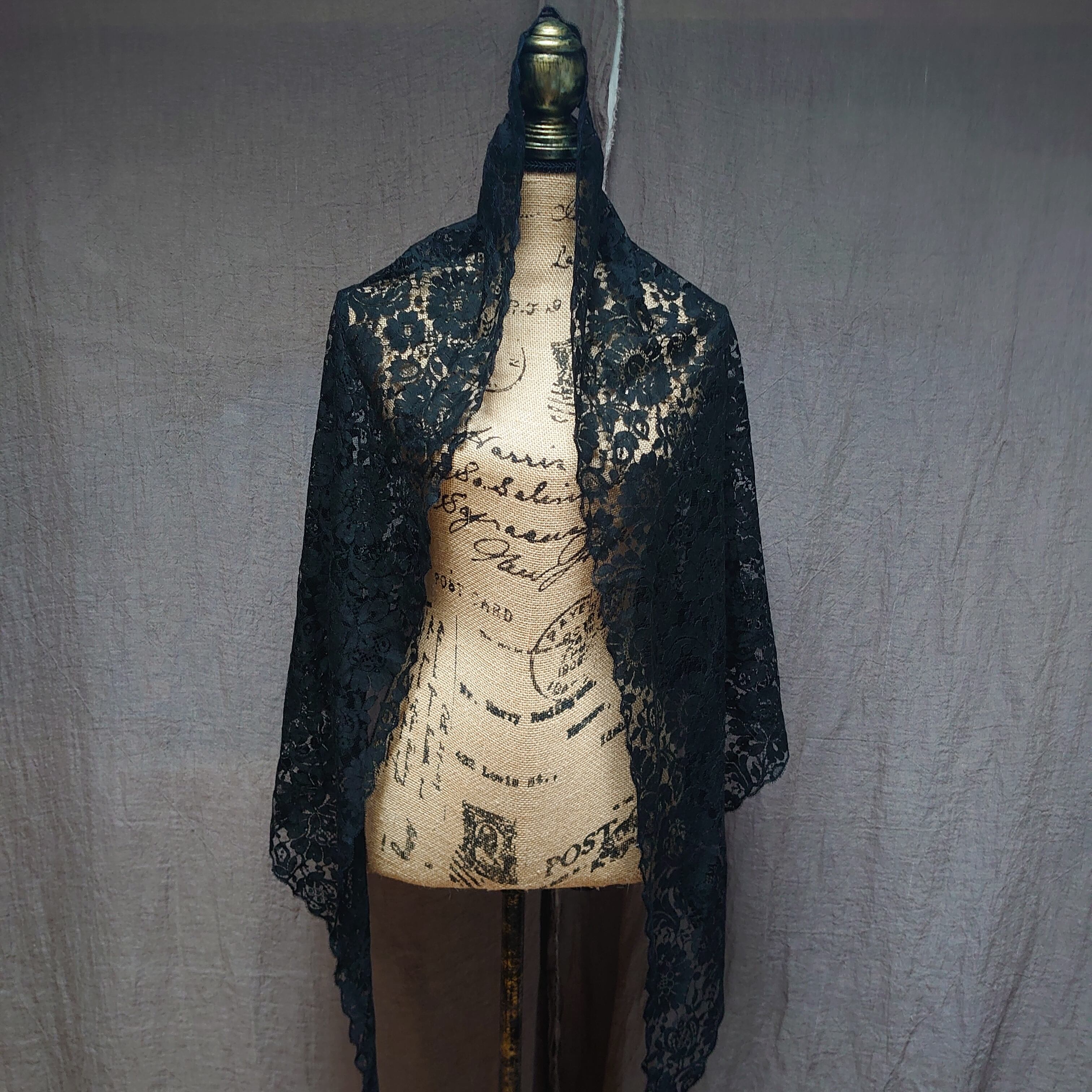 フランスアンティークのショールです。厳密には『マンティラ』というもので、女性が教会で頭と肩を覆うレースのベールになります。