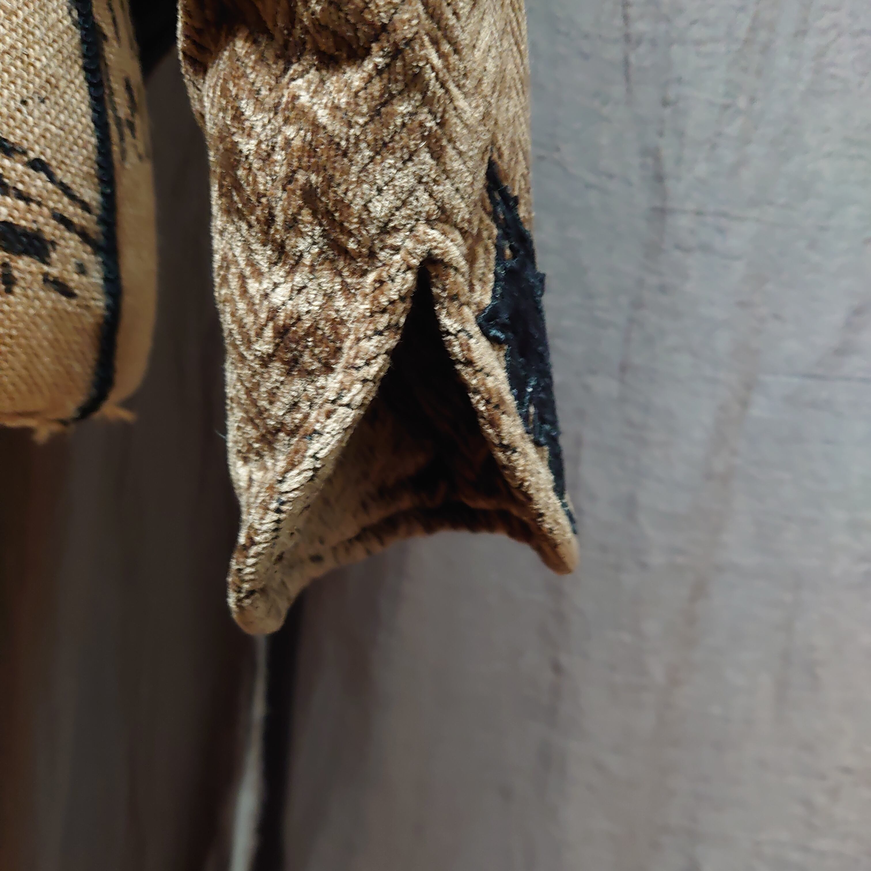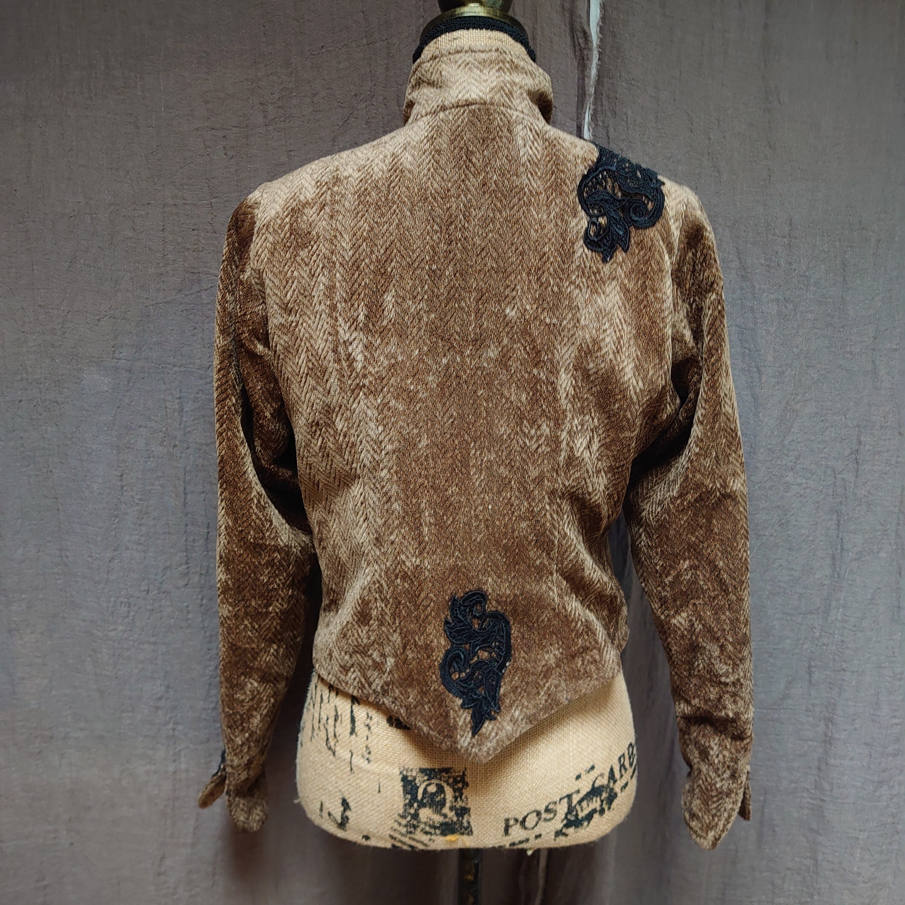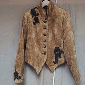 ベストのように鋭角にカットされた裾やスリットが入った袖口、異なる形のレースがポイントで縫い付けられていたり、デザインが凝っています。