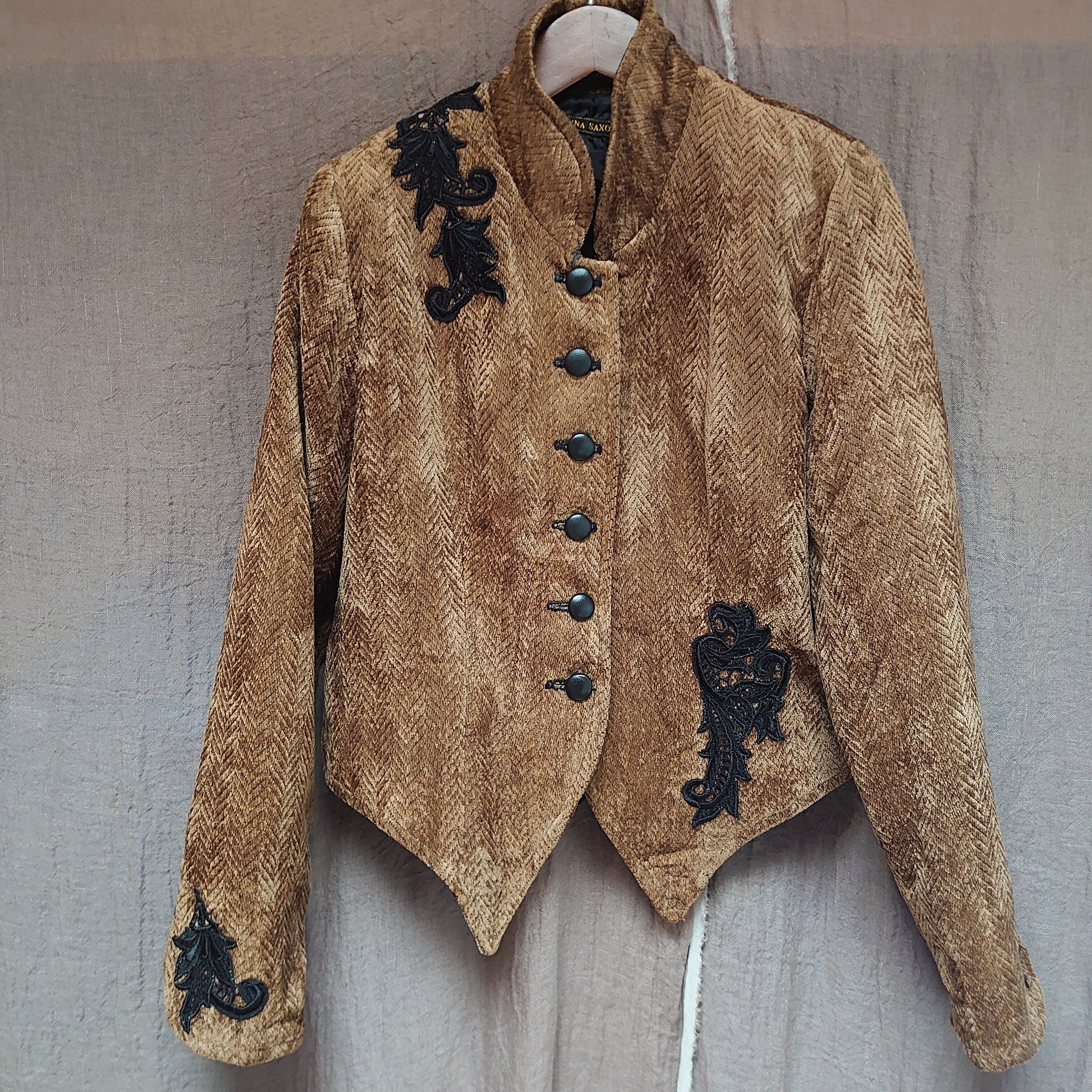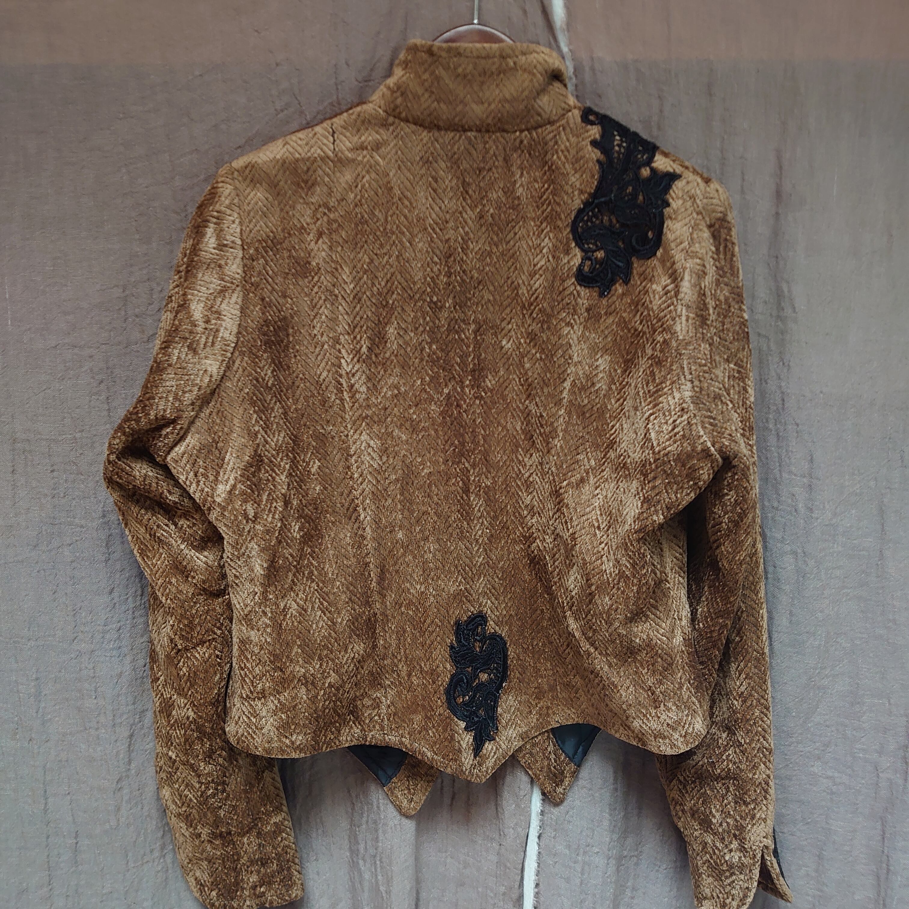 ANNA SAXON スタンドカラージャケット レース ベルベット ヘリンボーン