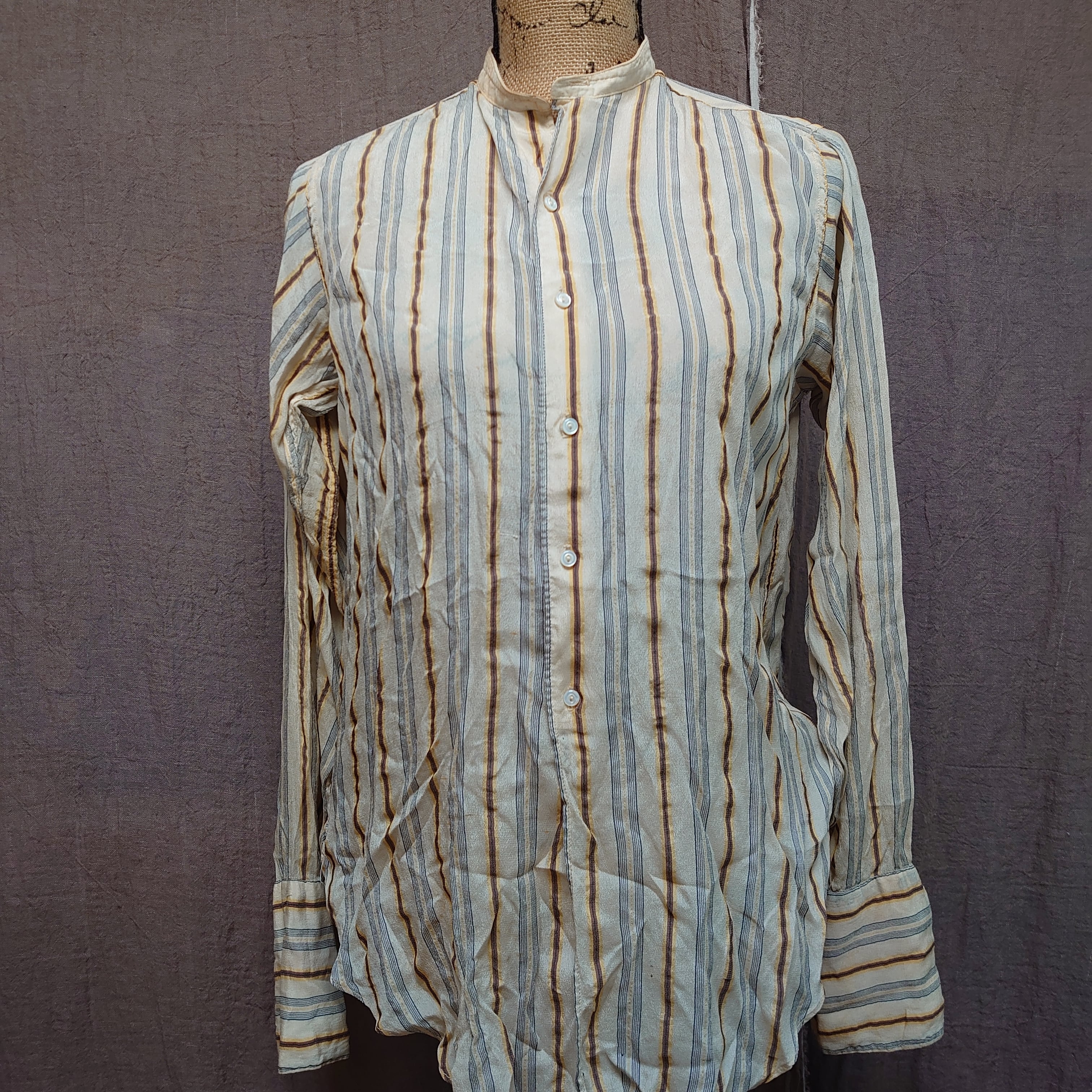 1930's アメリカ ヴィンテージ シルクシフォン ストライプ ブラウス シャツ silk stripe blouse antique