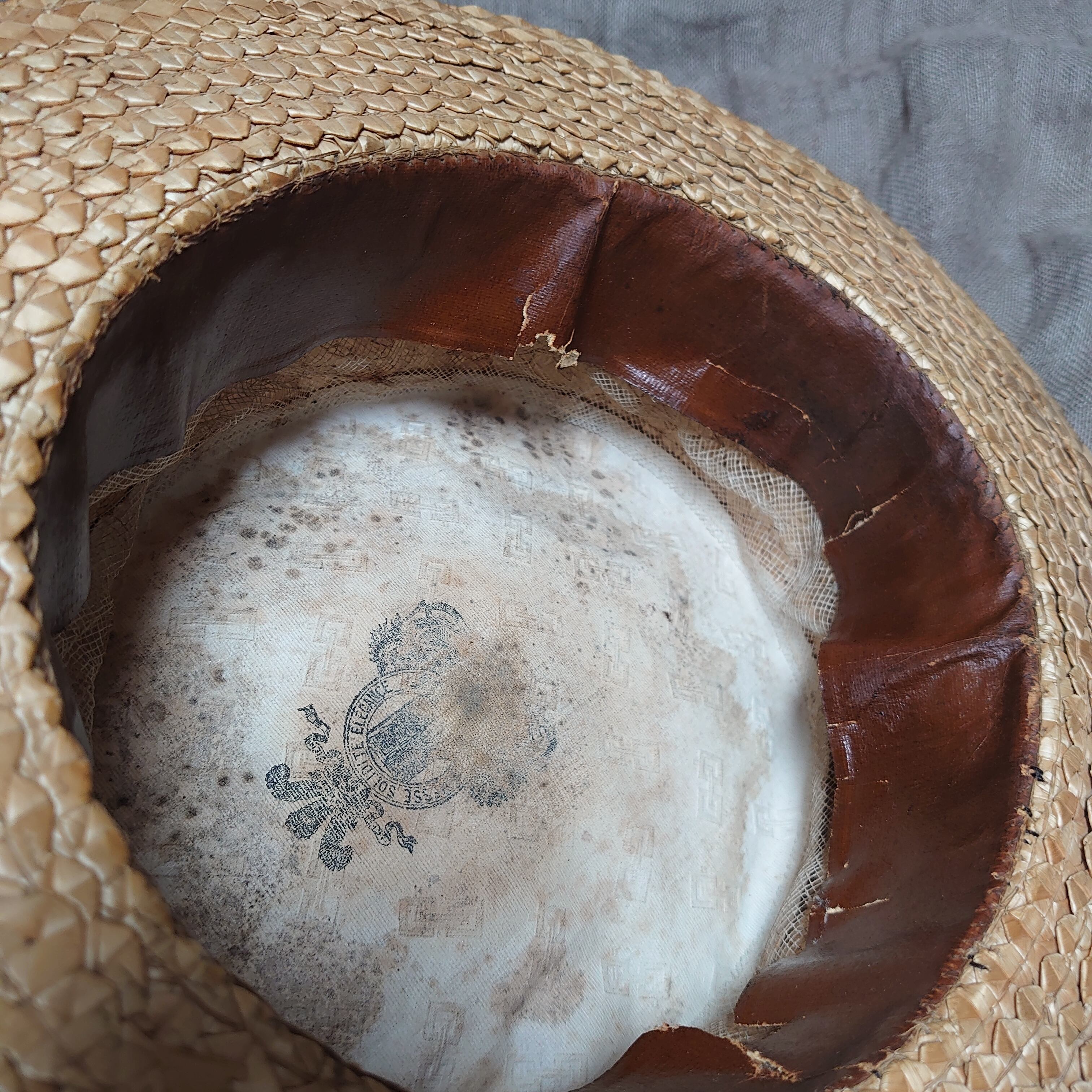 ブリムやクラウン部分に小さな欠け、リボンに生地の裂け、「スベリ」と呼ばれる帽子の内側のかぶり口に一周縫い付けられた、革で出来た汗止め用のバンドが経年による劣化で、破れたり固くなっています。