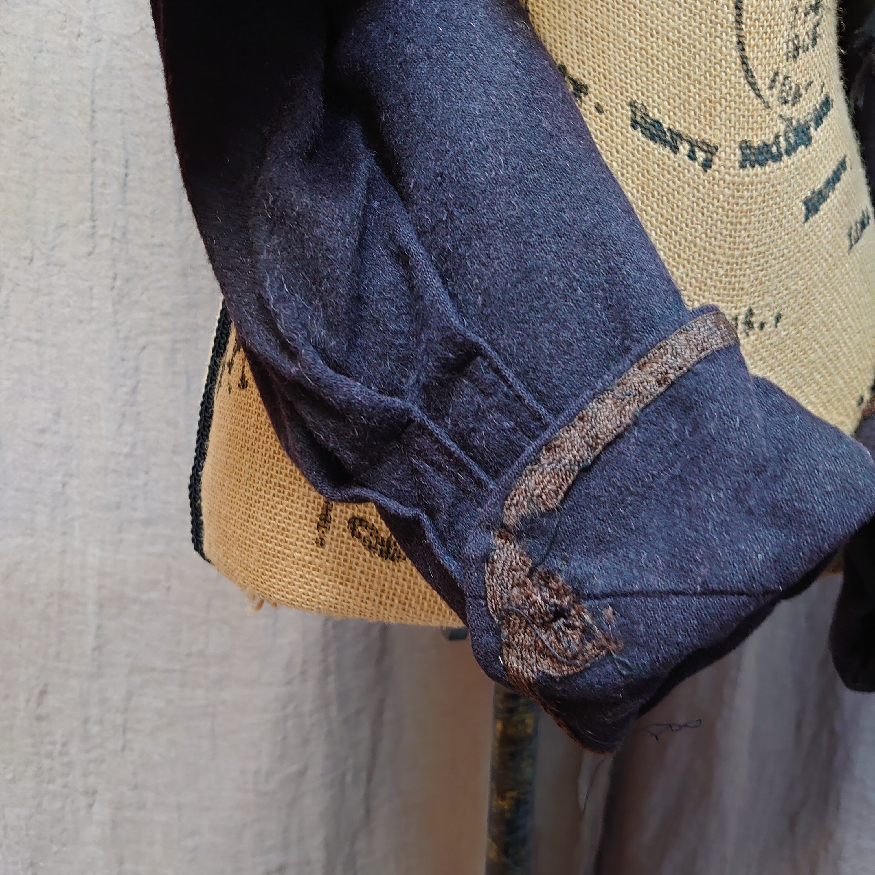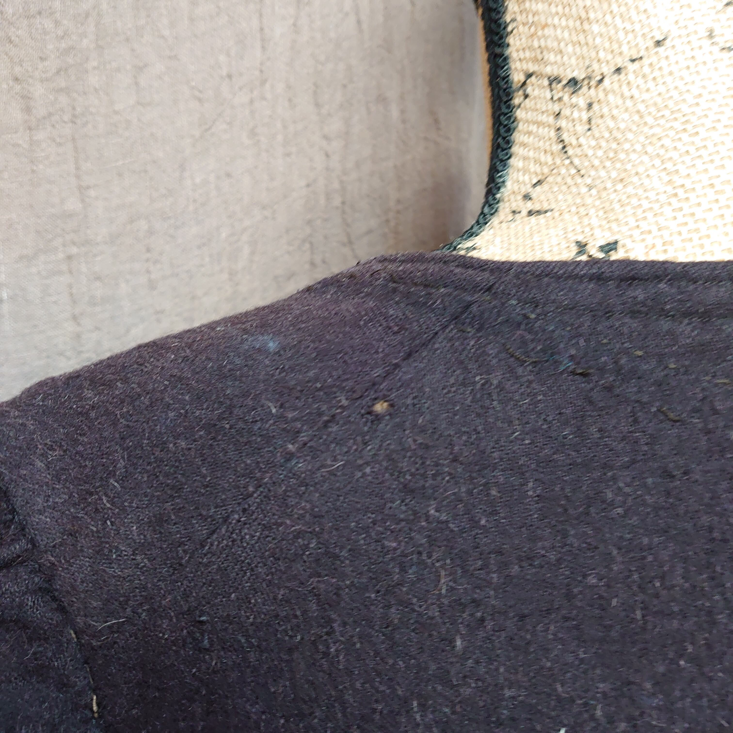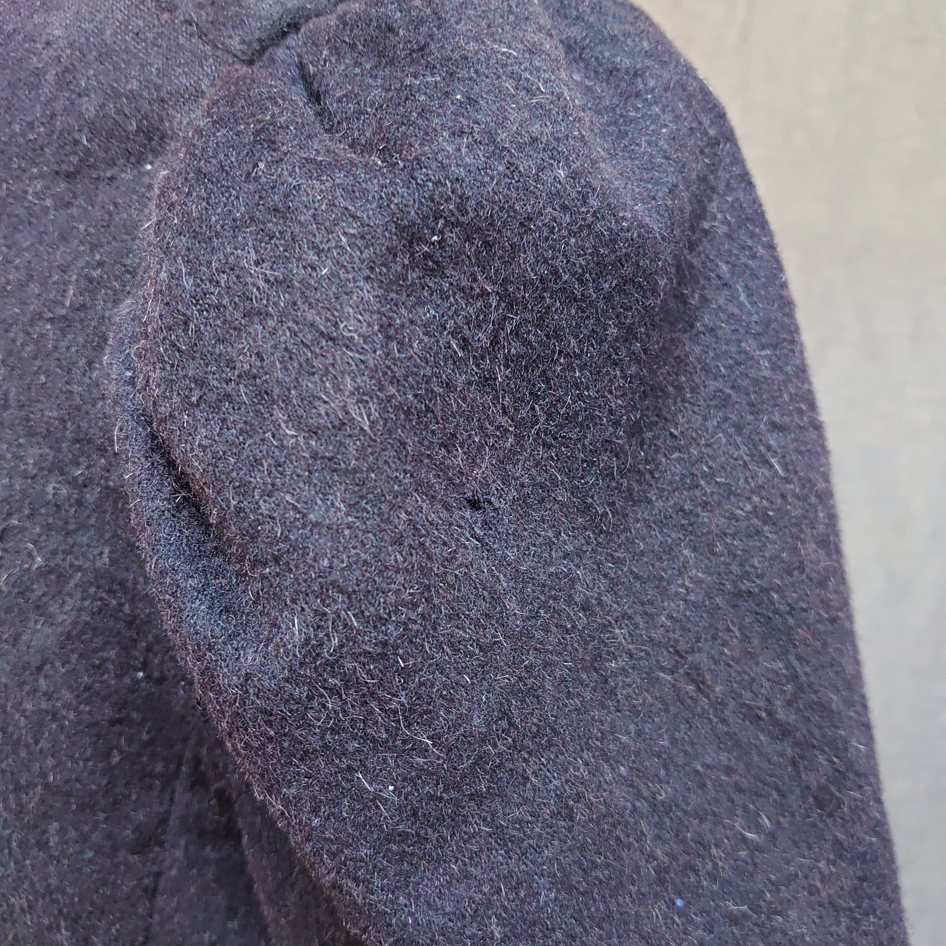 紫色が少し入ったようなニュアンスのある黒色のウールの表地は目立ったダメージはありません。