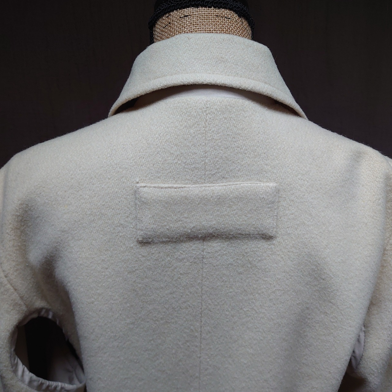 形はいたってシンプルなコートですが、ワキの下だけくり抜かれています。