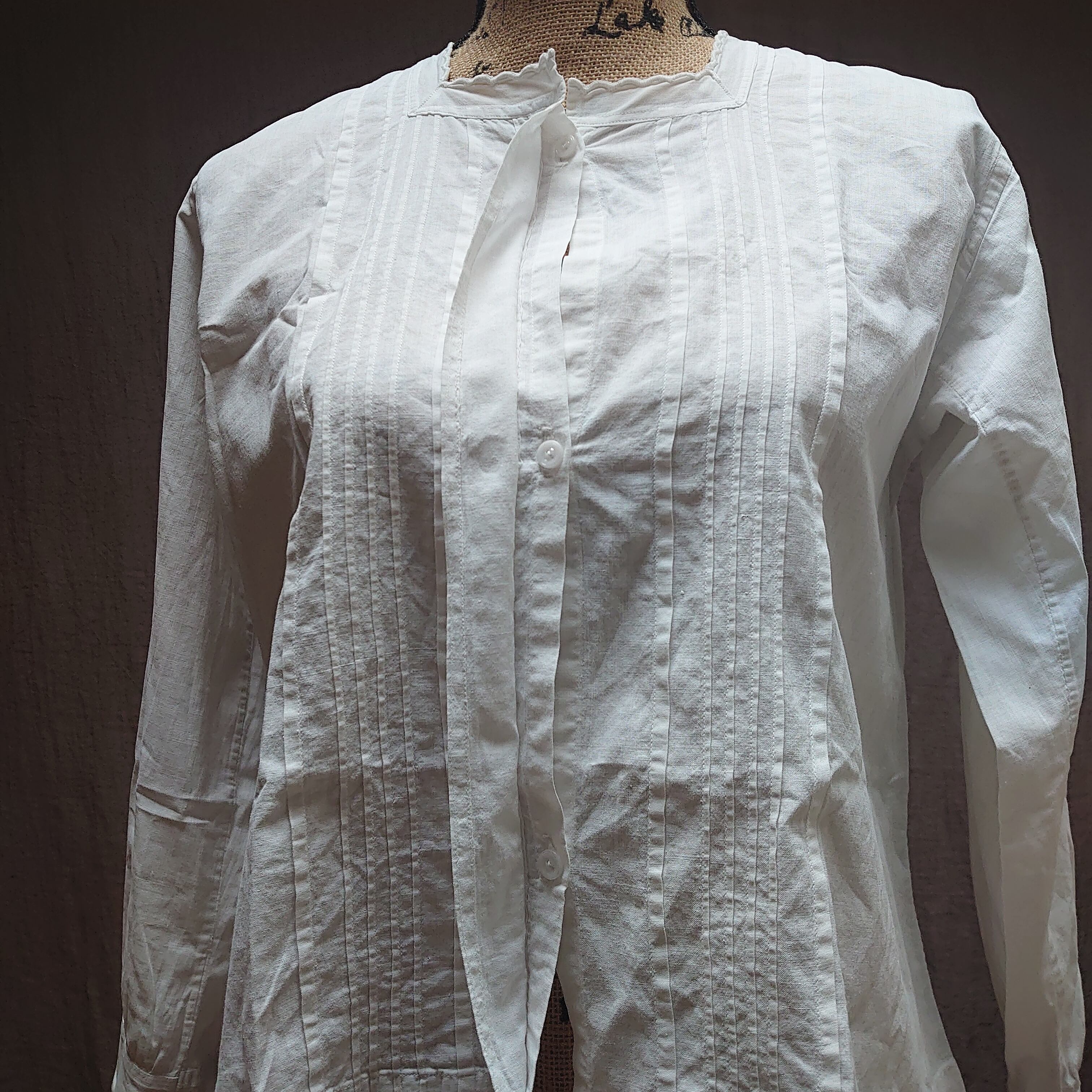 パリッとしたハリのある生地感が特徴のアンティークブラウスです。
