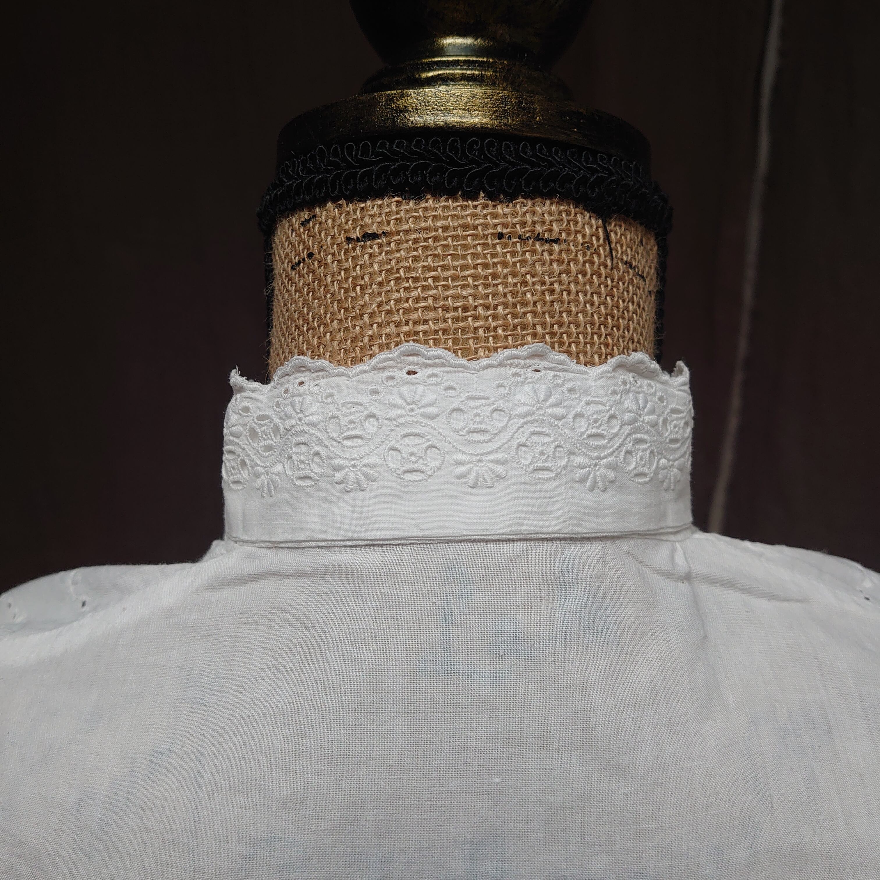 1950's vintage embroidery eyelet lace white cotton blouse french
