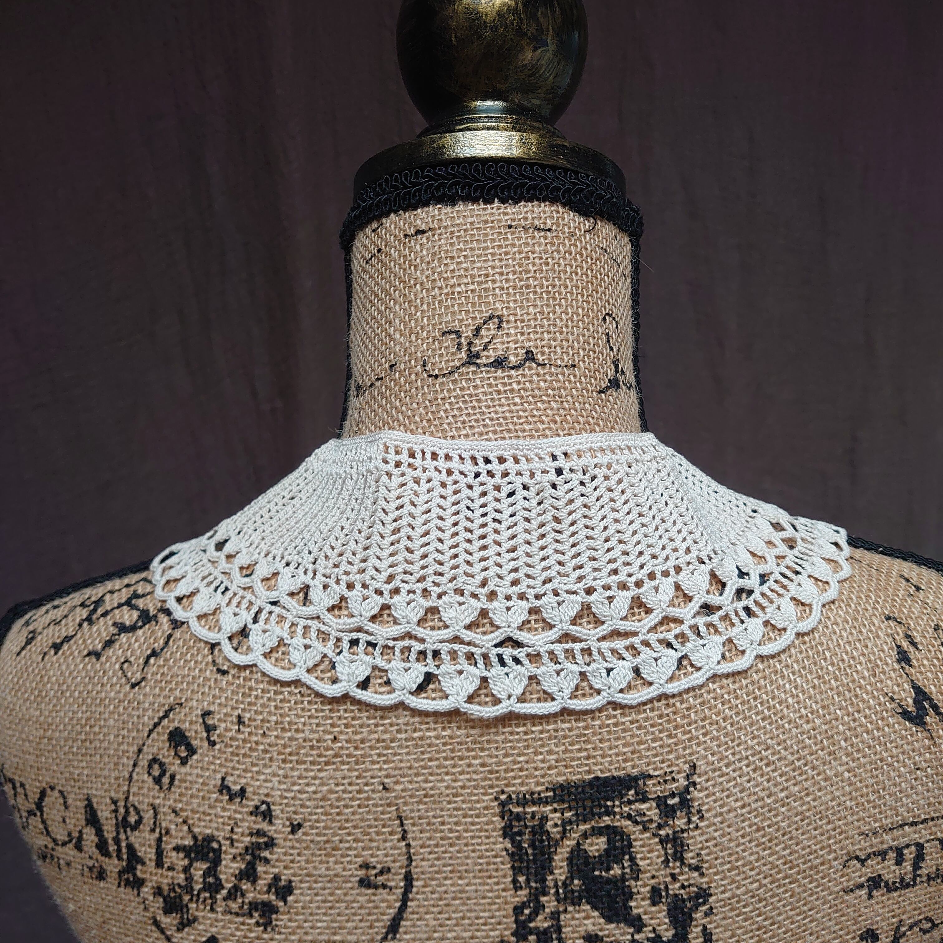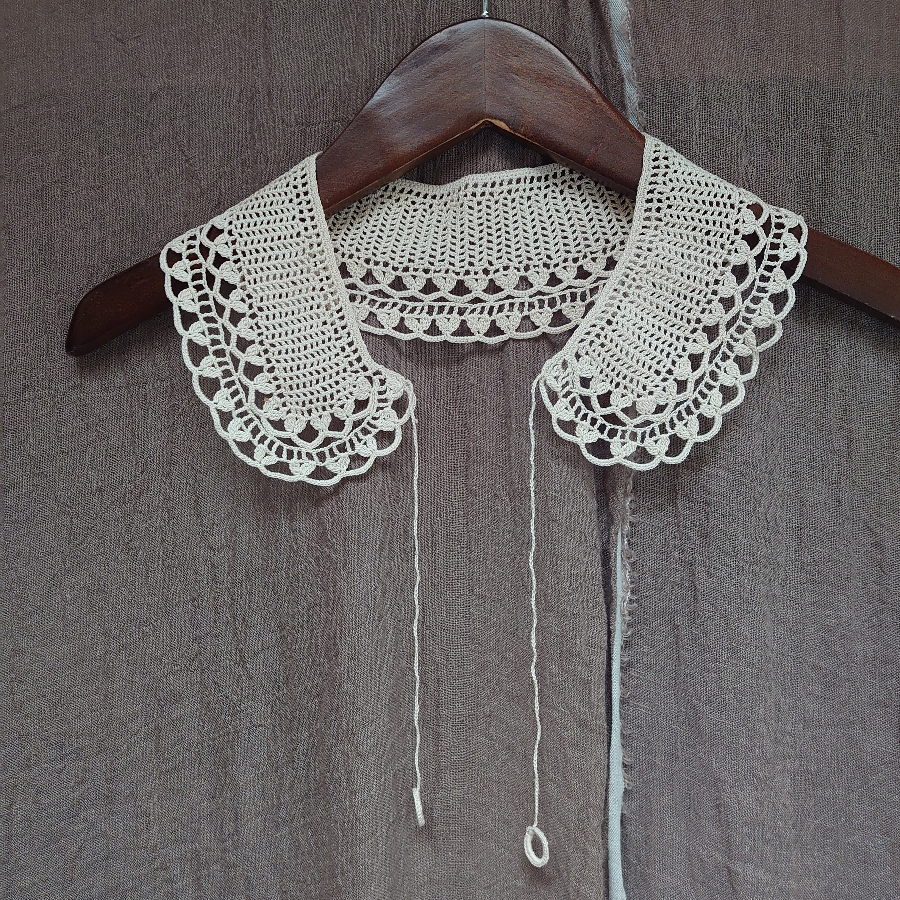生成りのような色味がかわいらしいクロッシェレースのつけ襟です。うれしいデッドストックです◎