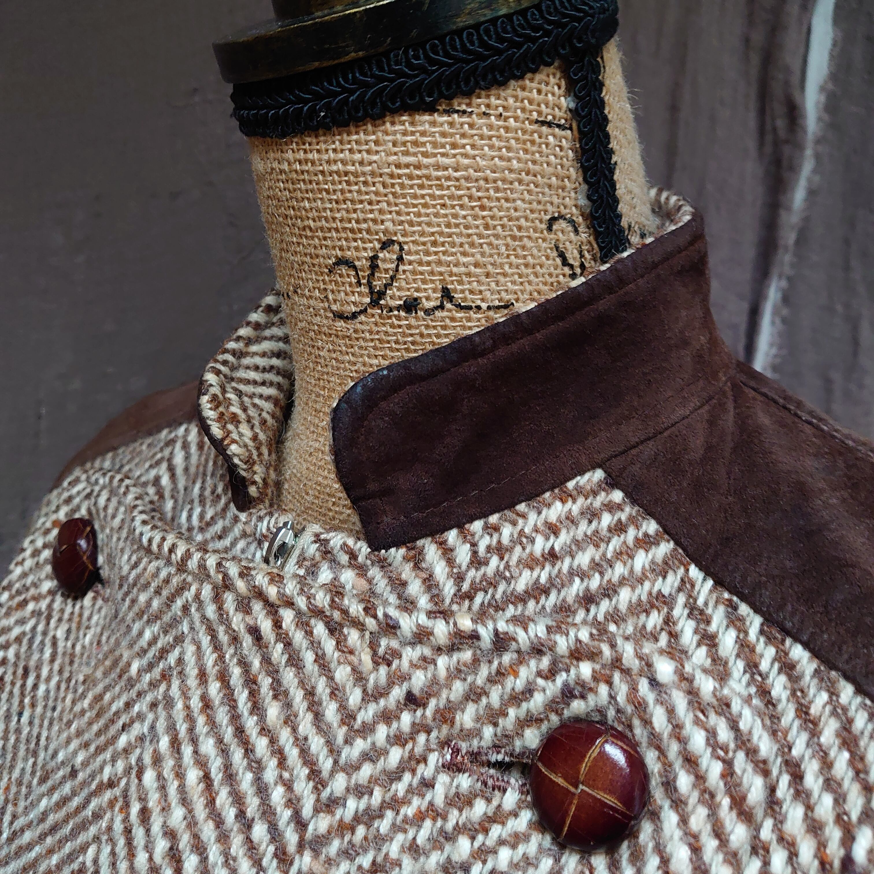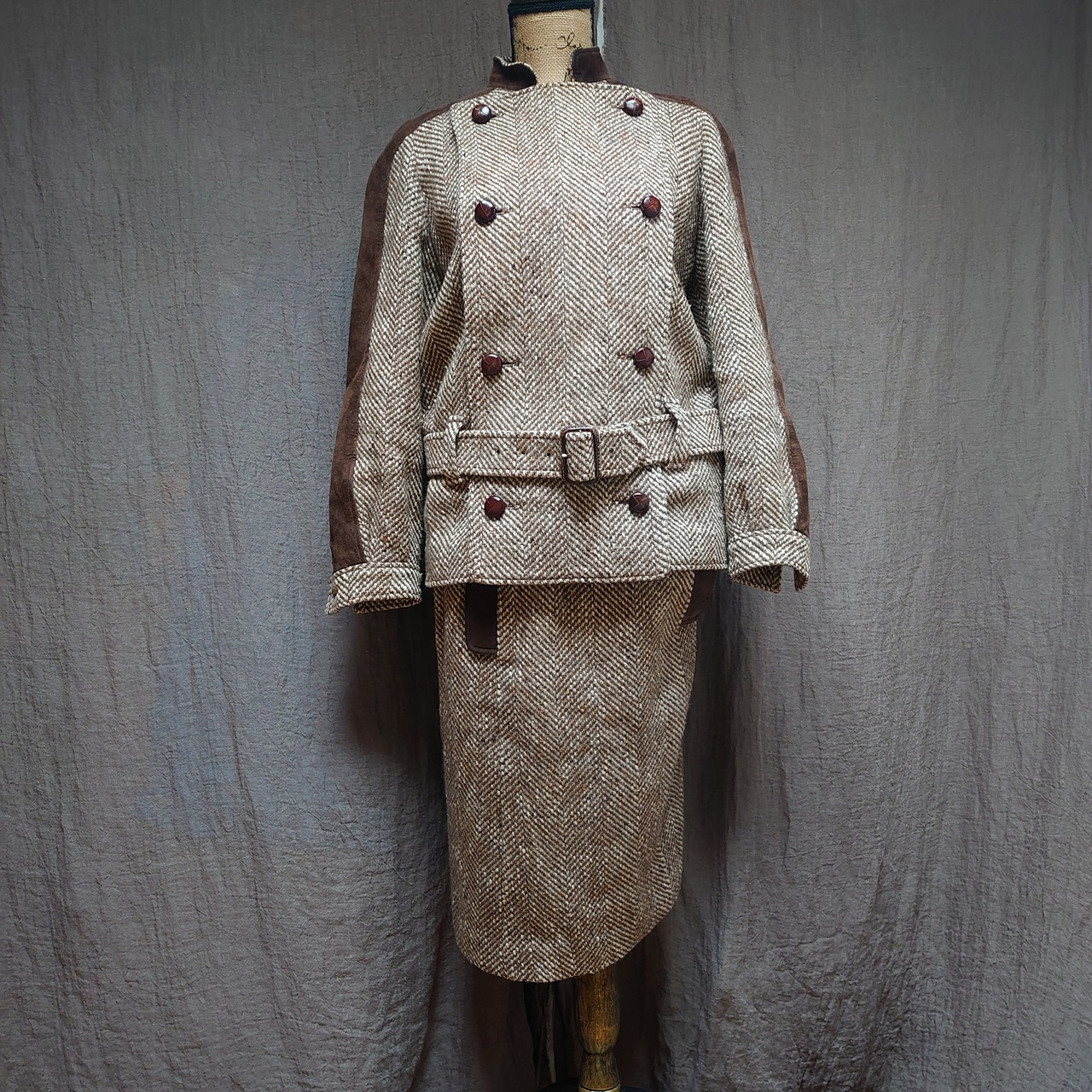 60's vintage french paris courreges herringborn two-piece setup suits brown