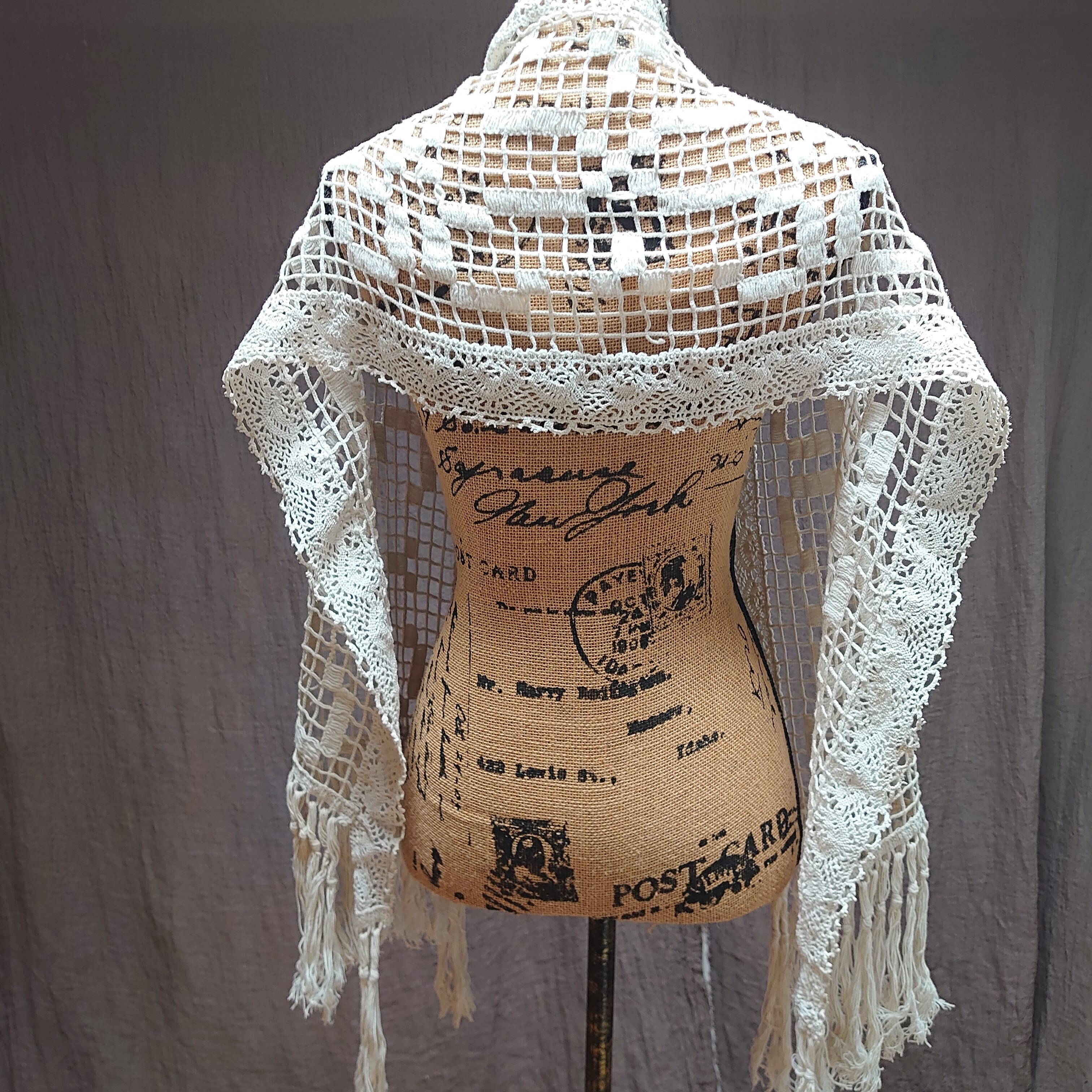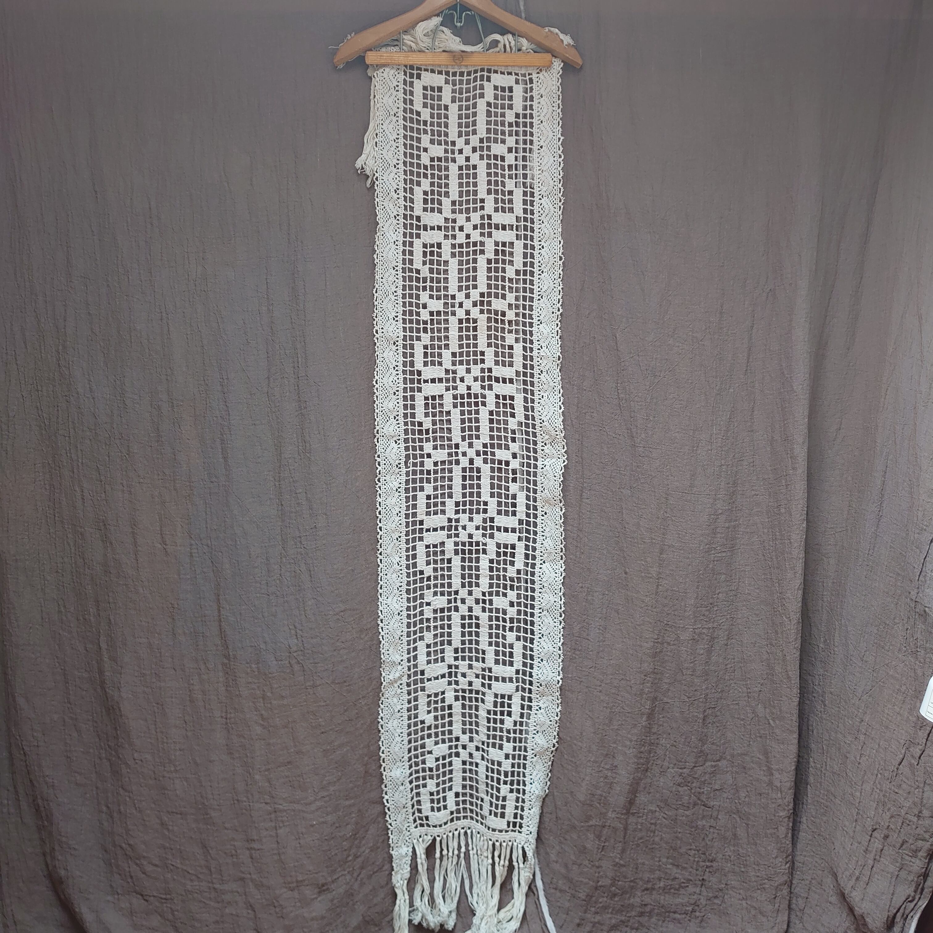 1950's vintage french cotton crocheted lace fringe stole ecru 生成り