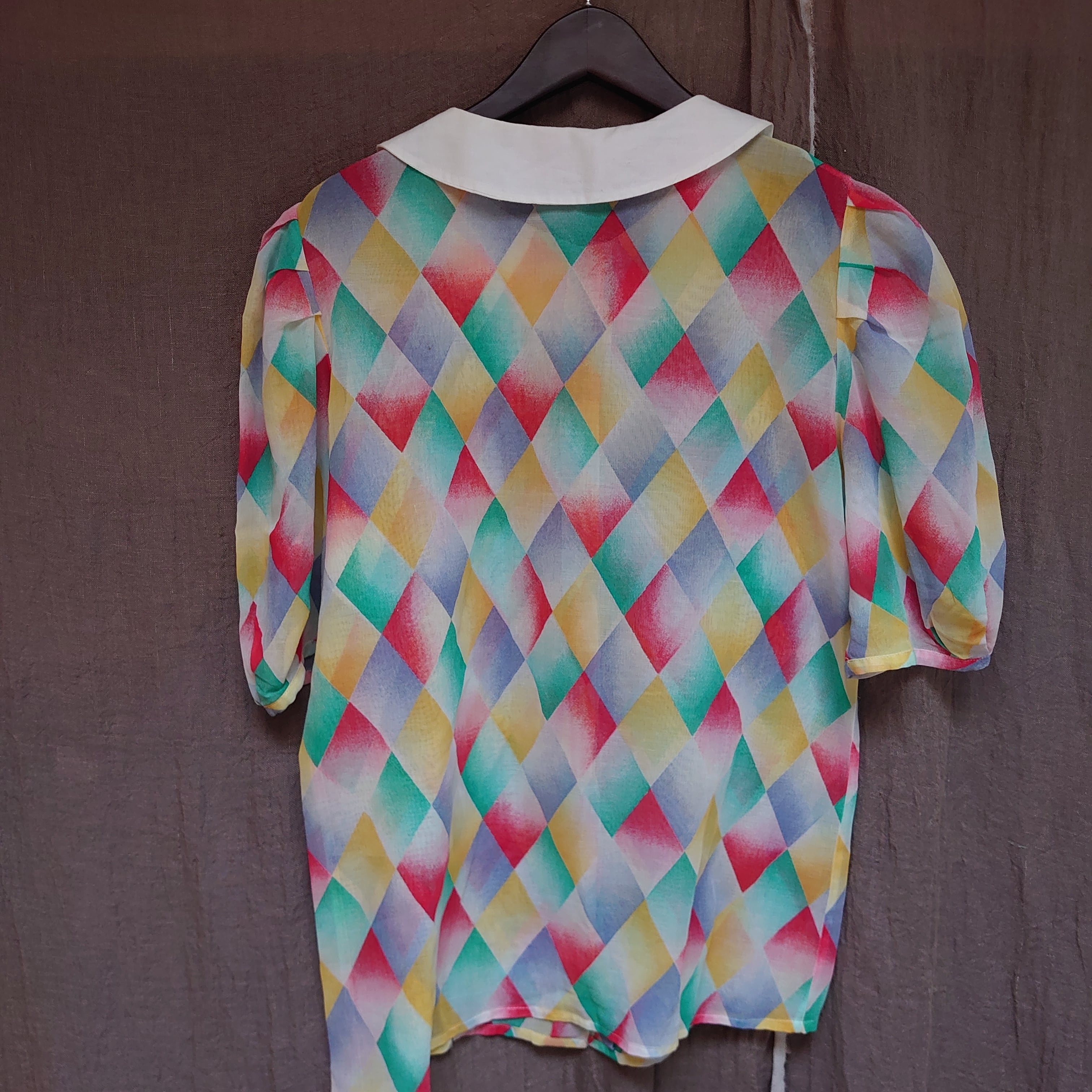80's French Vintage Multicolor Printed Short Sleeved Sheer Blouse Shirt Lasserre