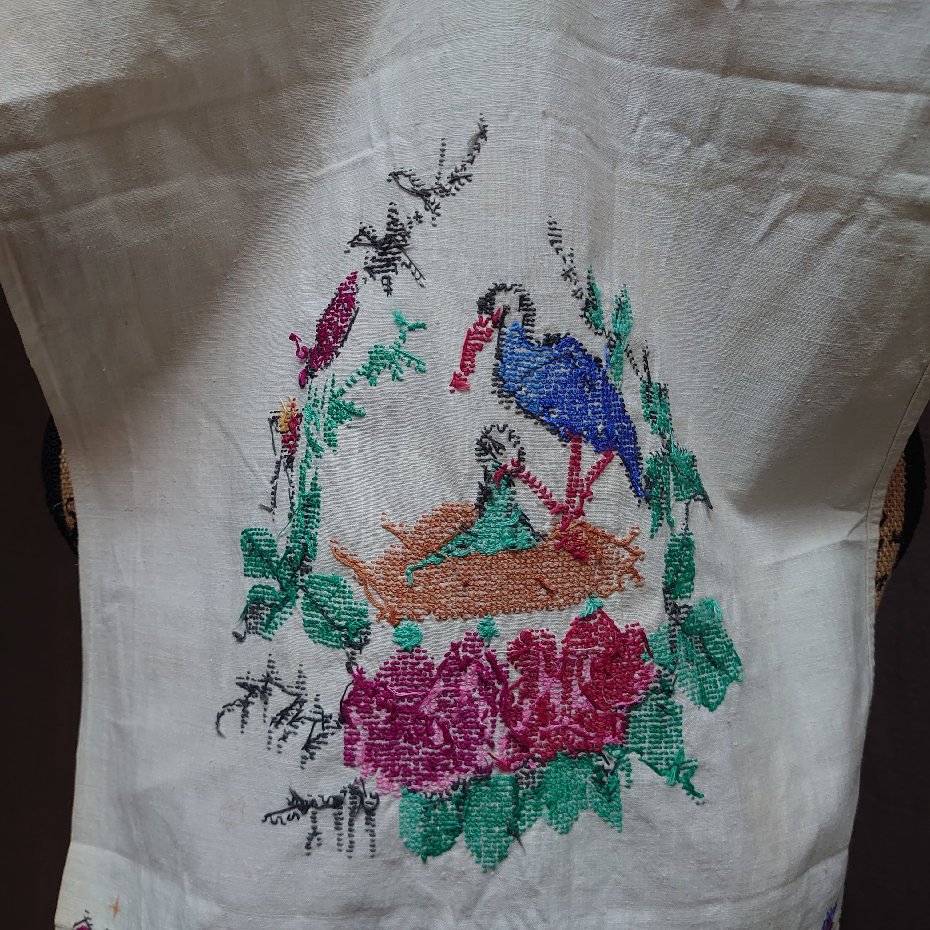 ukraine vintage embroidered cotton handmade rushnyk towel stork in the nest