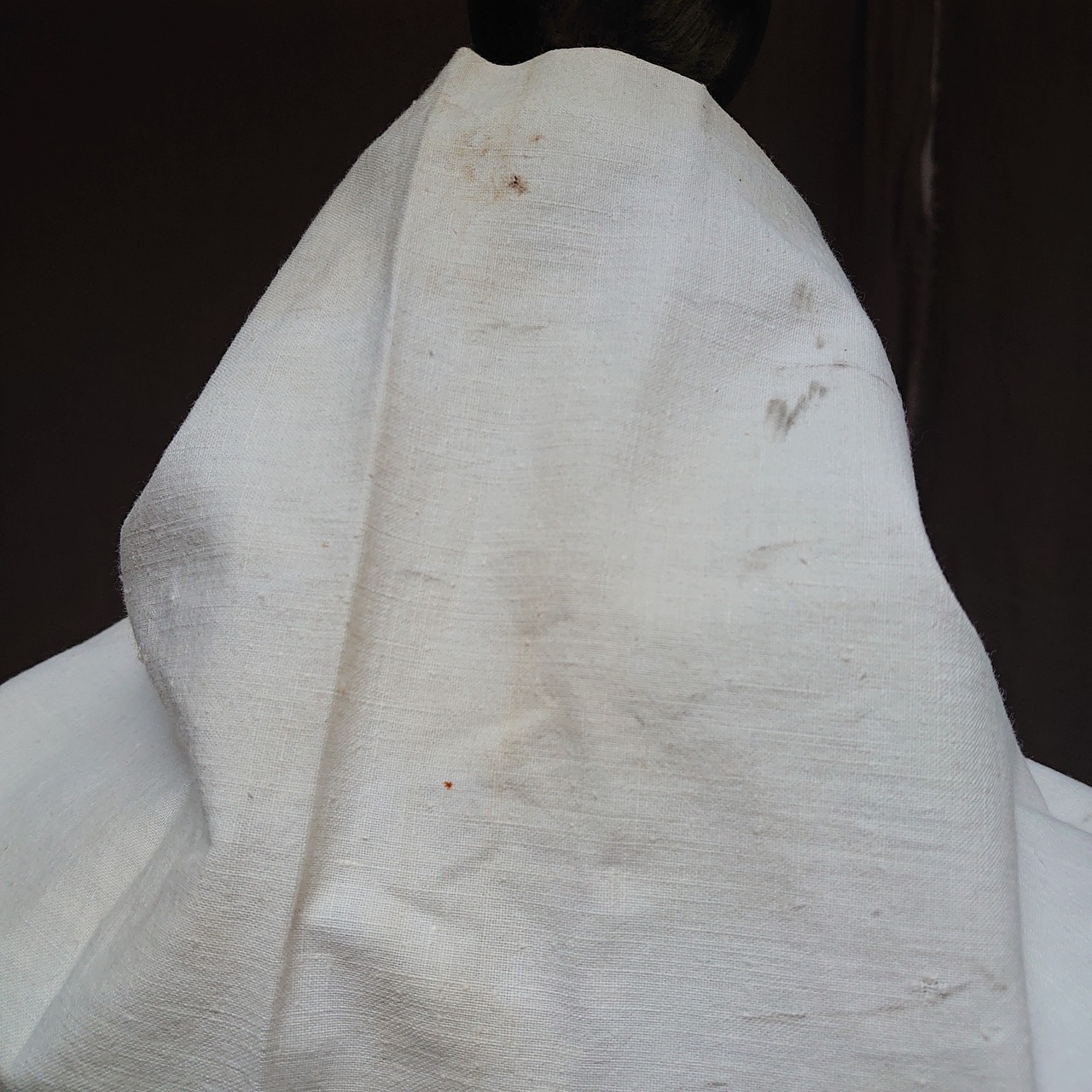 うすい汚れが全体的に目立ちます。洗濯してみましたが、古い汚れのためかあまり変わりませんでした。