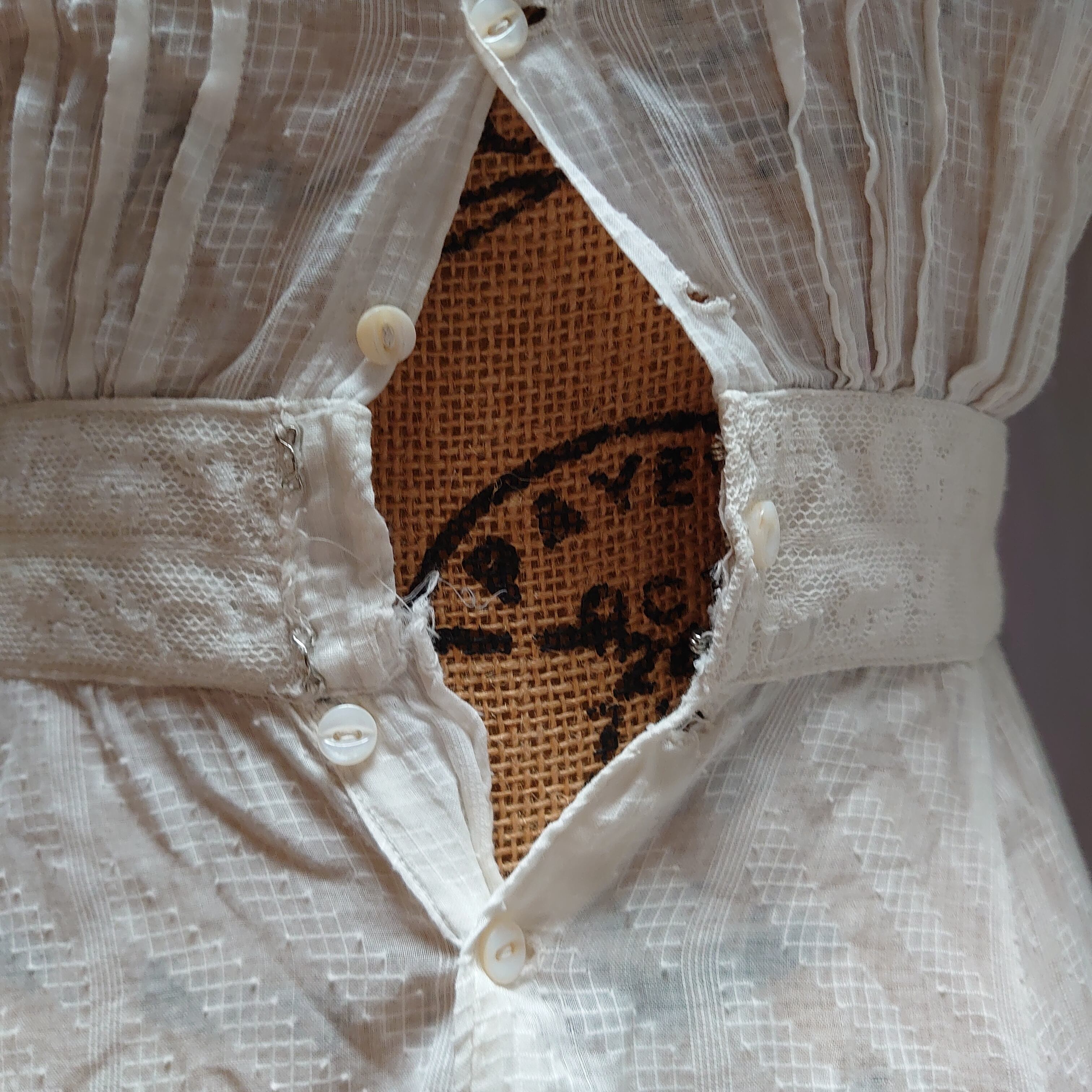 ビクトリア期のものでコルセットの影響のせいか、ウエストが異常に細くなっています。