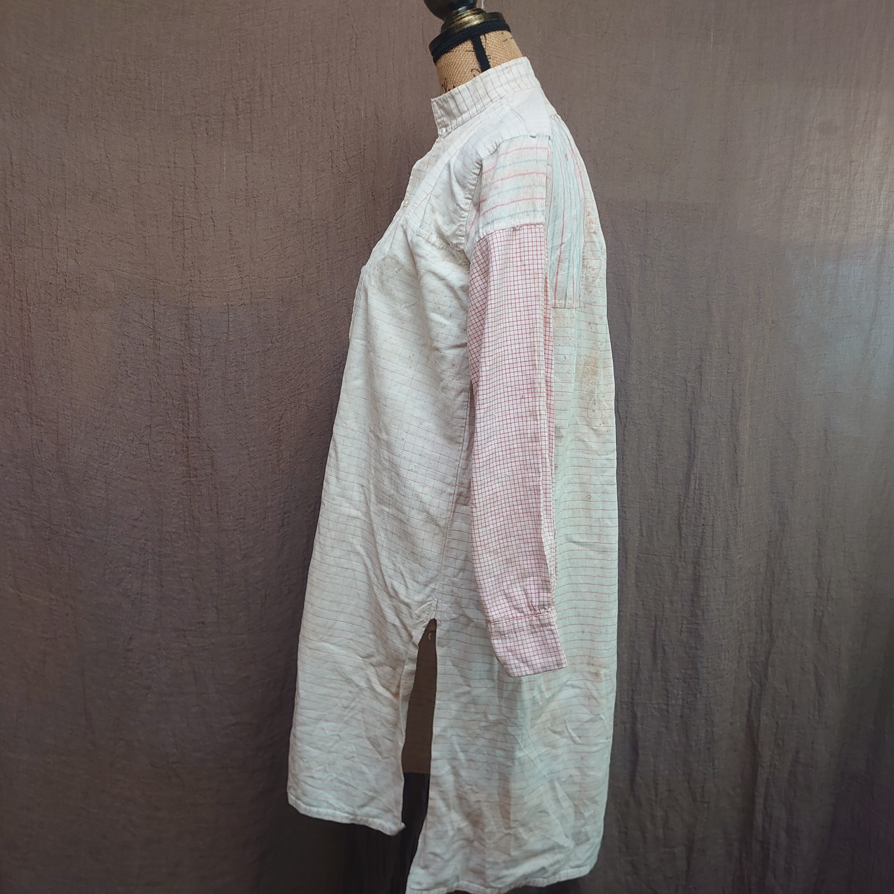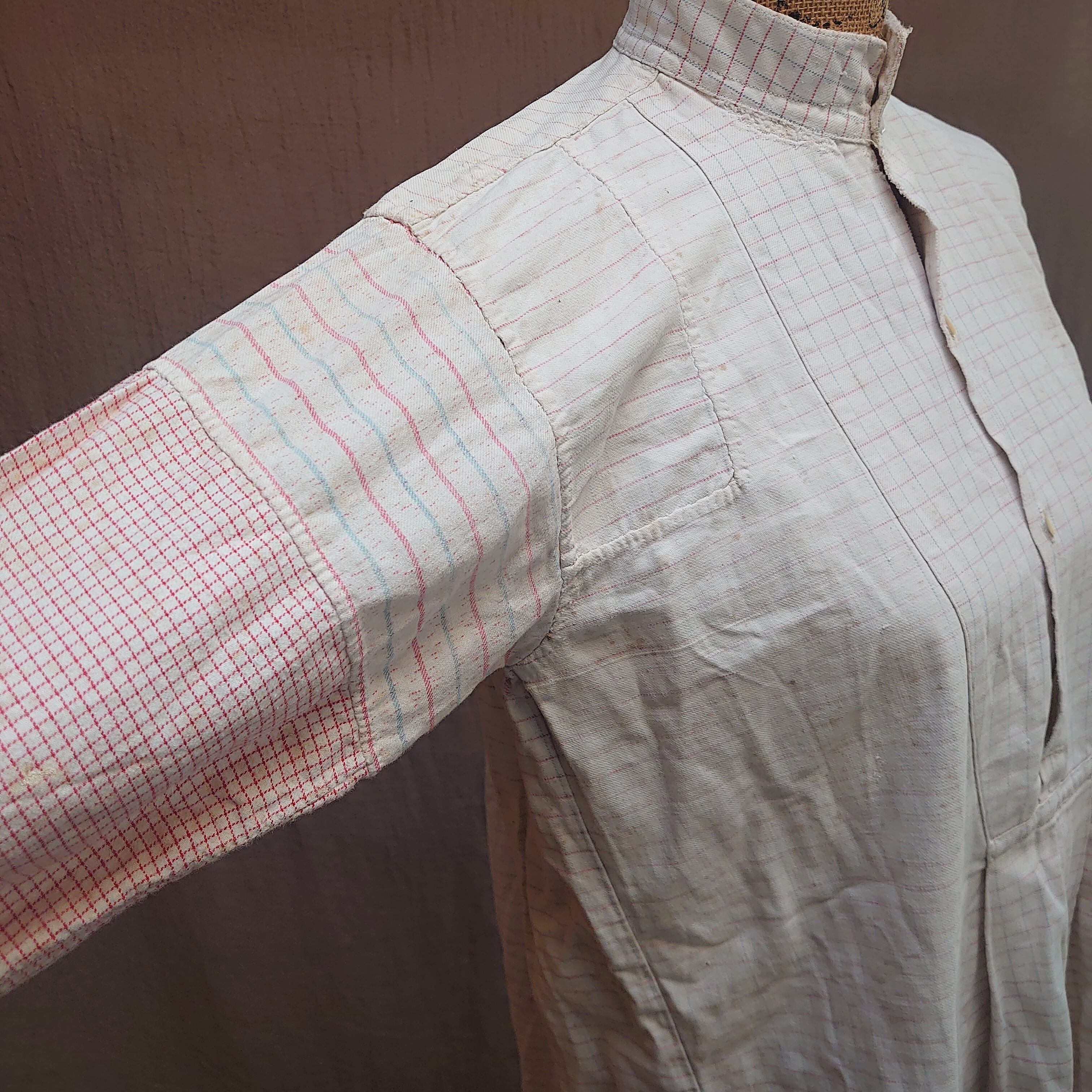 french antique grand pa work long boro shirt peasant patch-work blouse