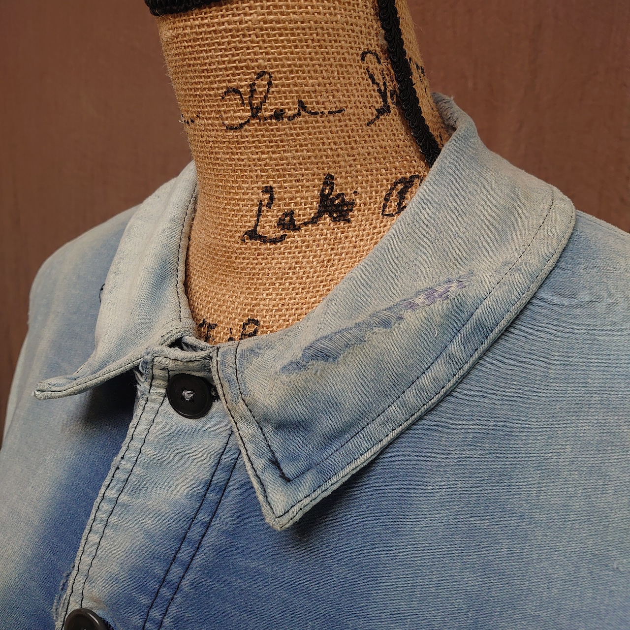 色あせた色味、リペアを繰り返しながら、大切に着られてきたパッチ部分やダーニング跡などの雰囲気が抜群の