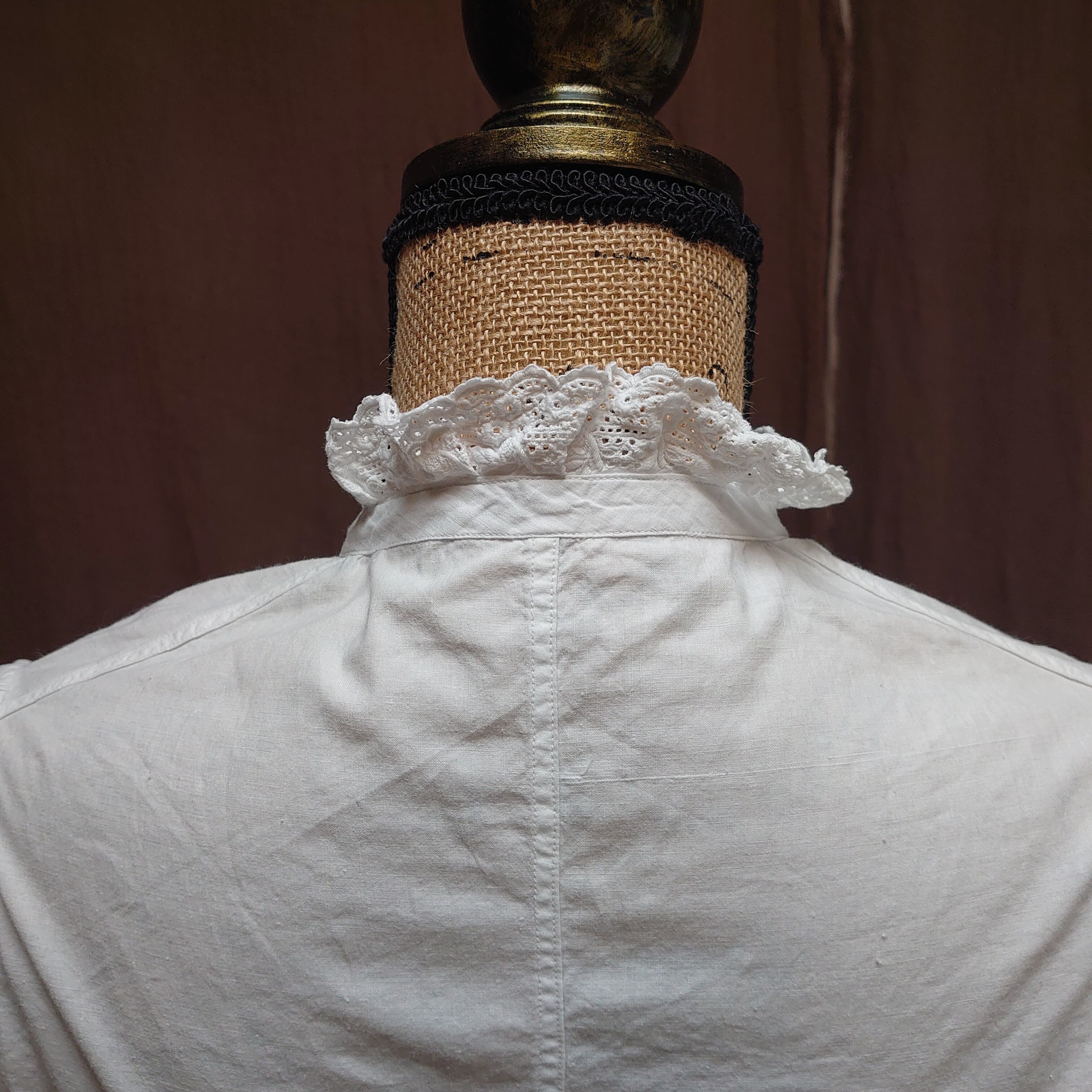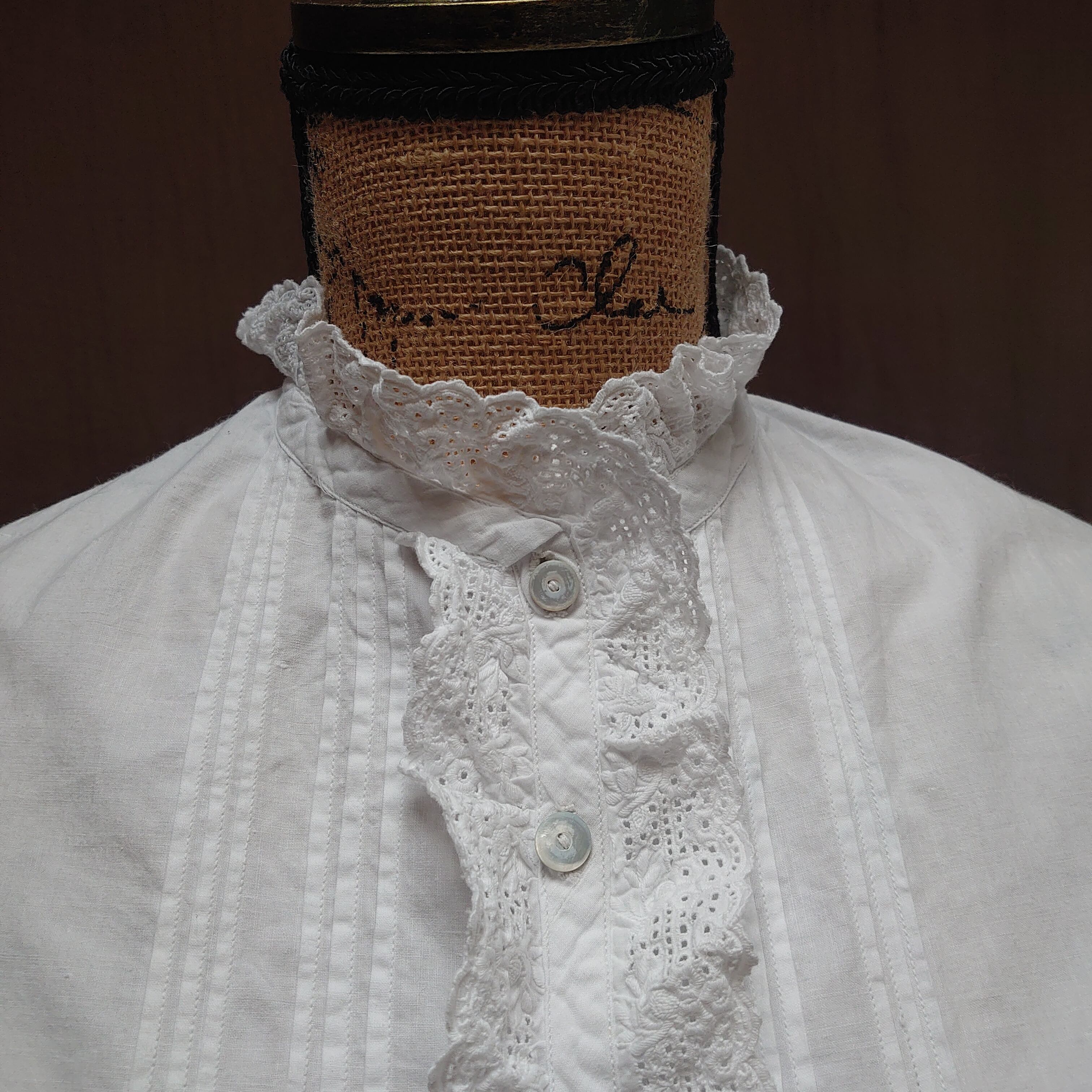 edwardian antique cotton blouse shirt pin tucked lace trimed collar