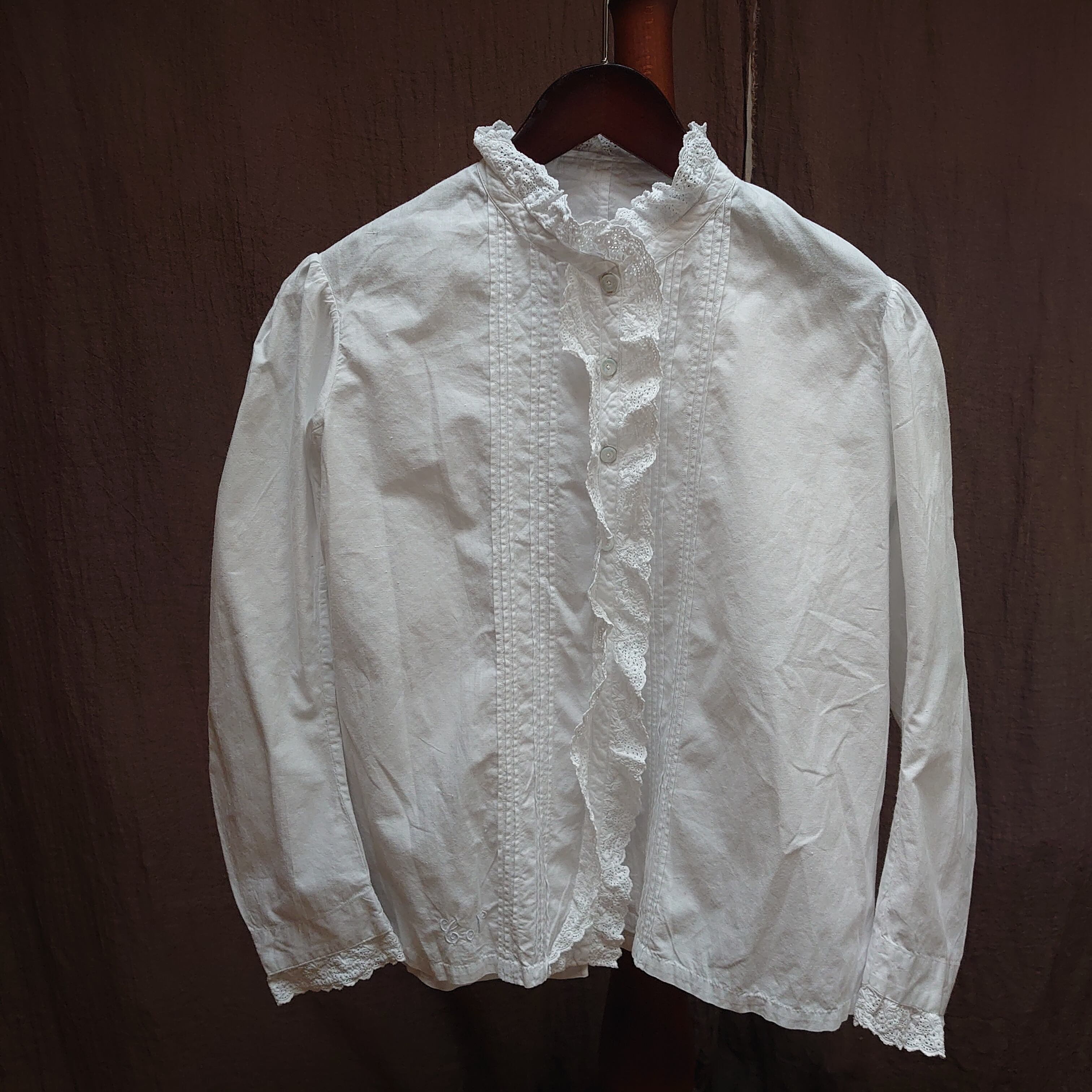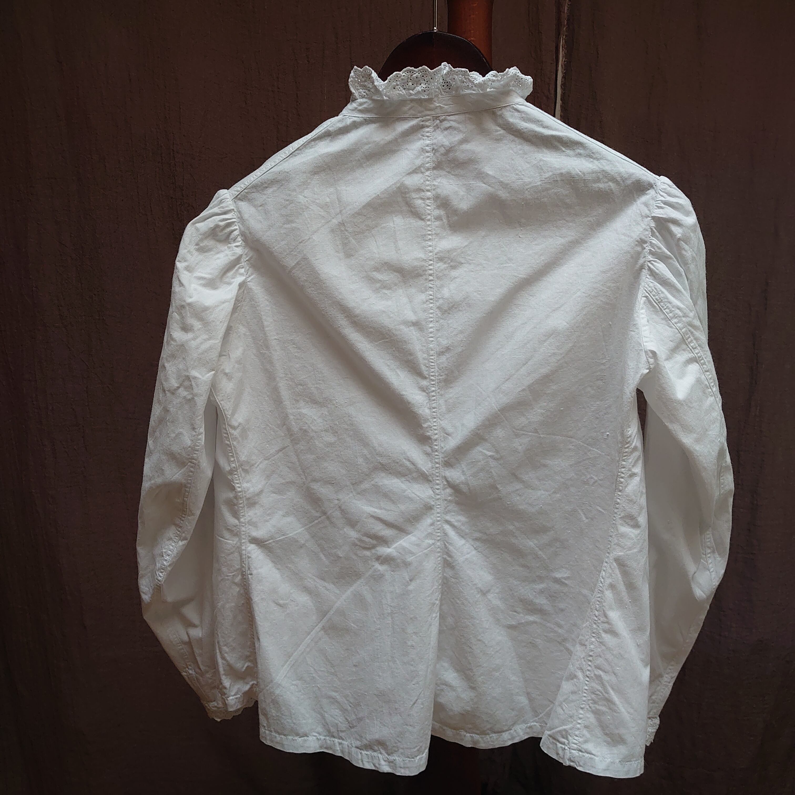 1900年代ぐらいのエドワード期のブラウスだと思います。しっかりしたハリ感のある丈夫な生地なので、ガシガシ着てもらえます。