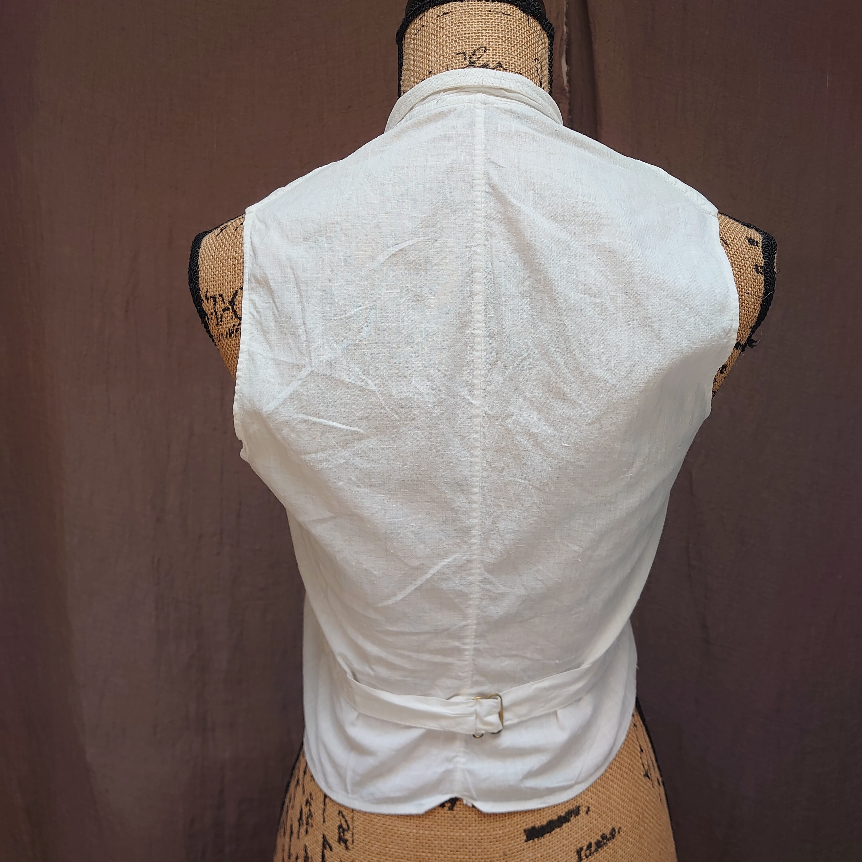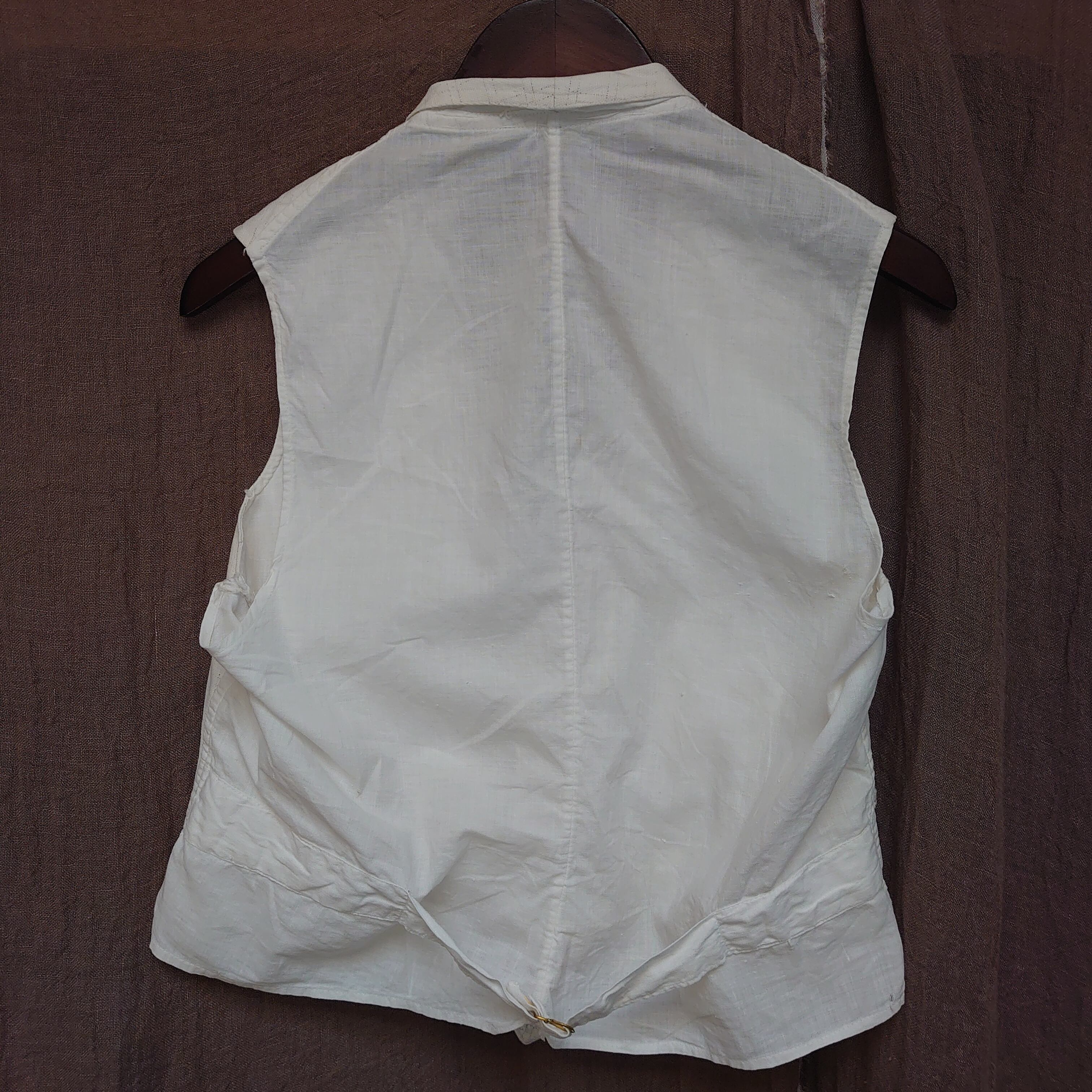 1920's antique white cotton canvas gilet faded check vest