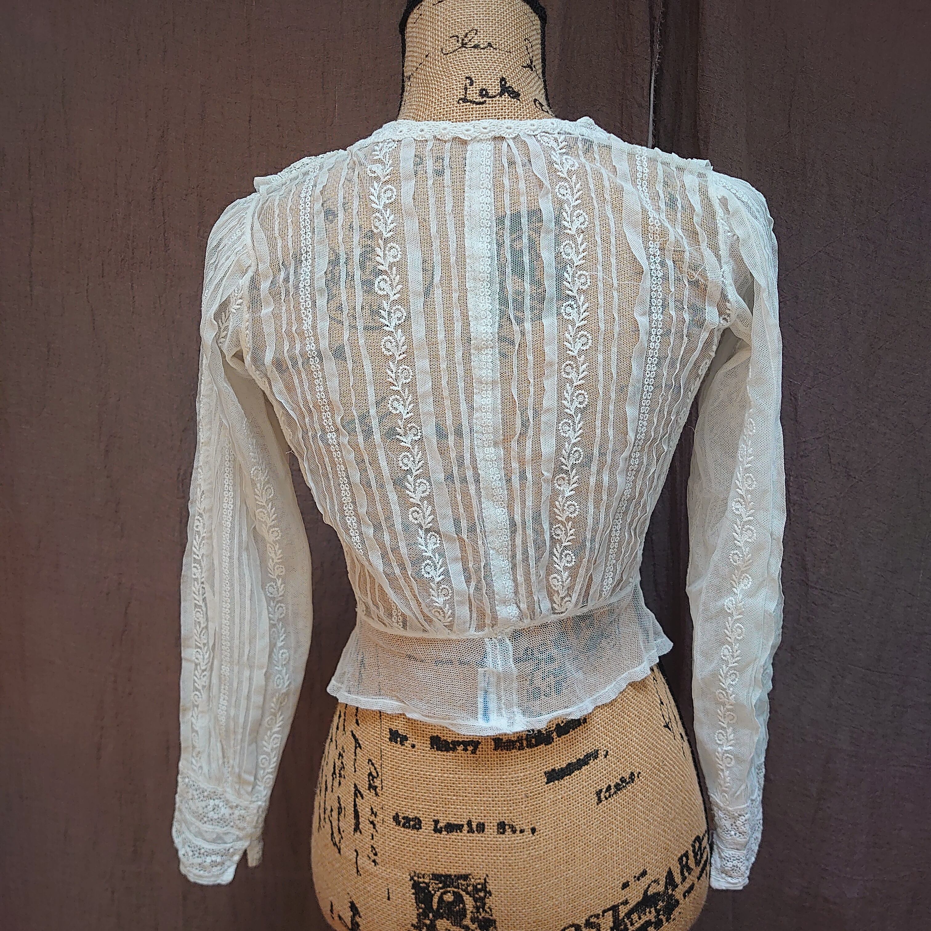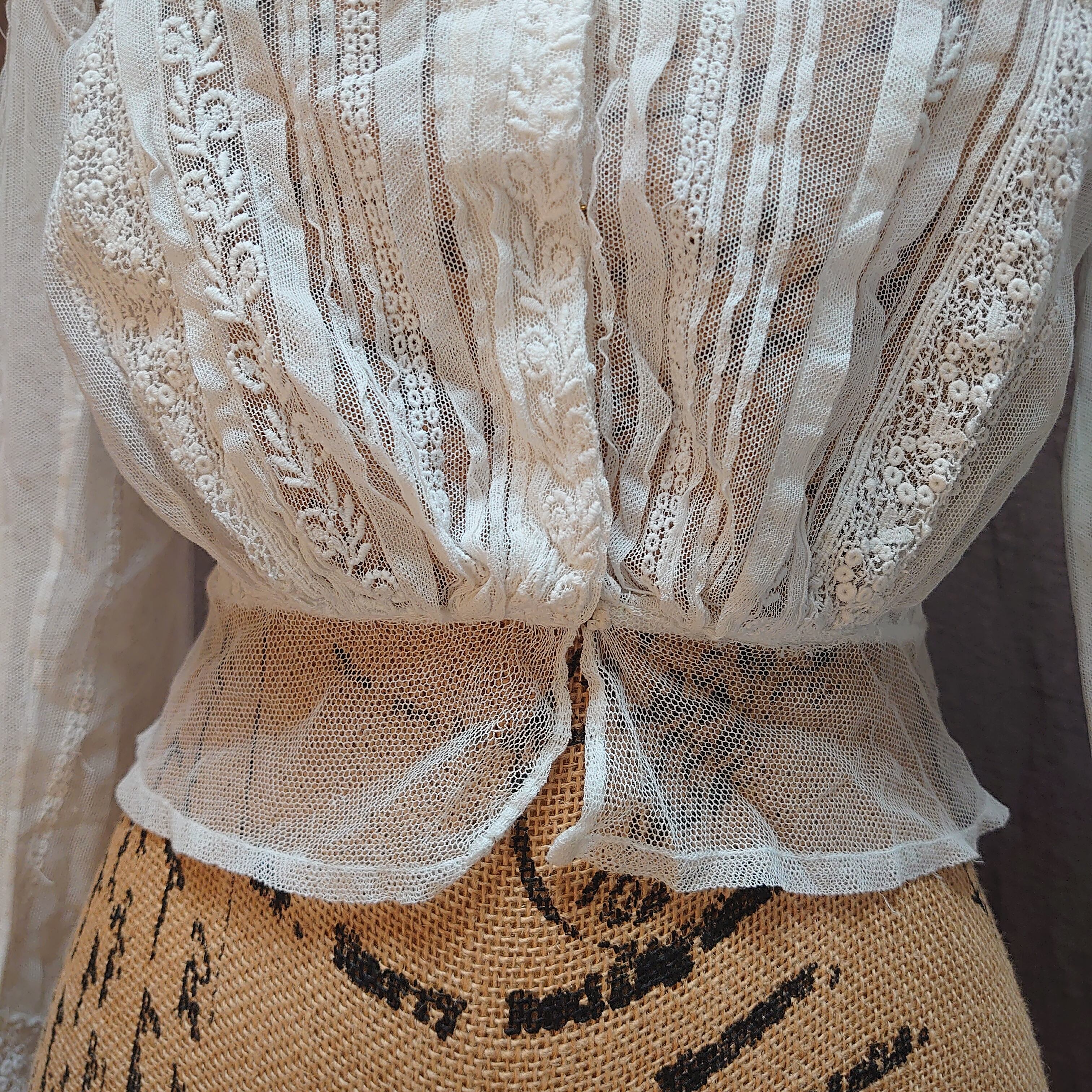 1910s antique edwardian white cotton lace tulle blouse cardigan