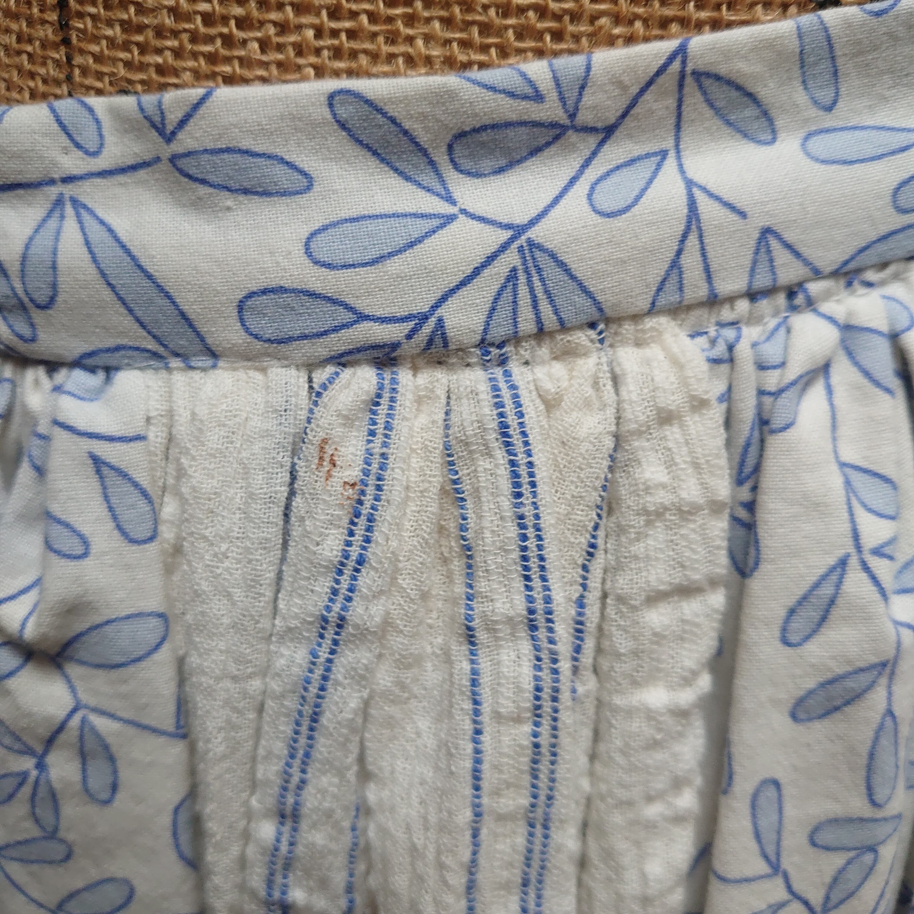 1900s〜 antique cotton peasant petticoat white skirt blue stripe gauze