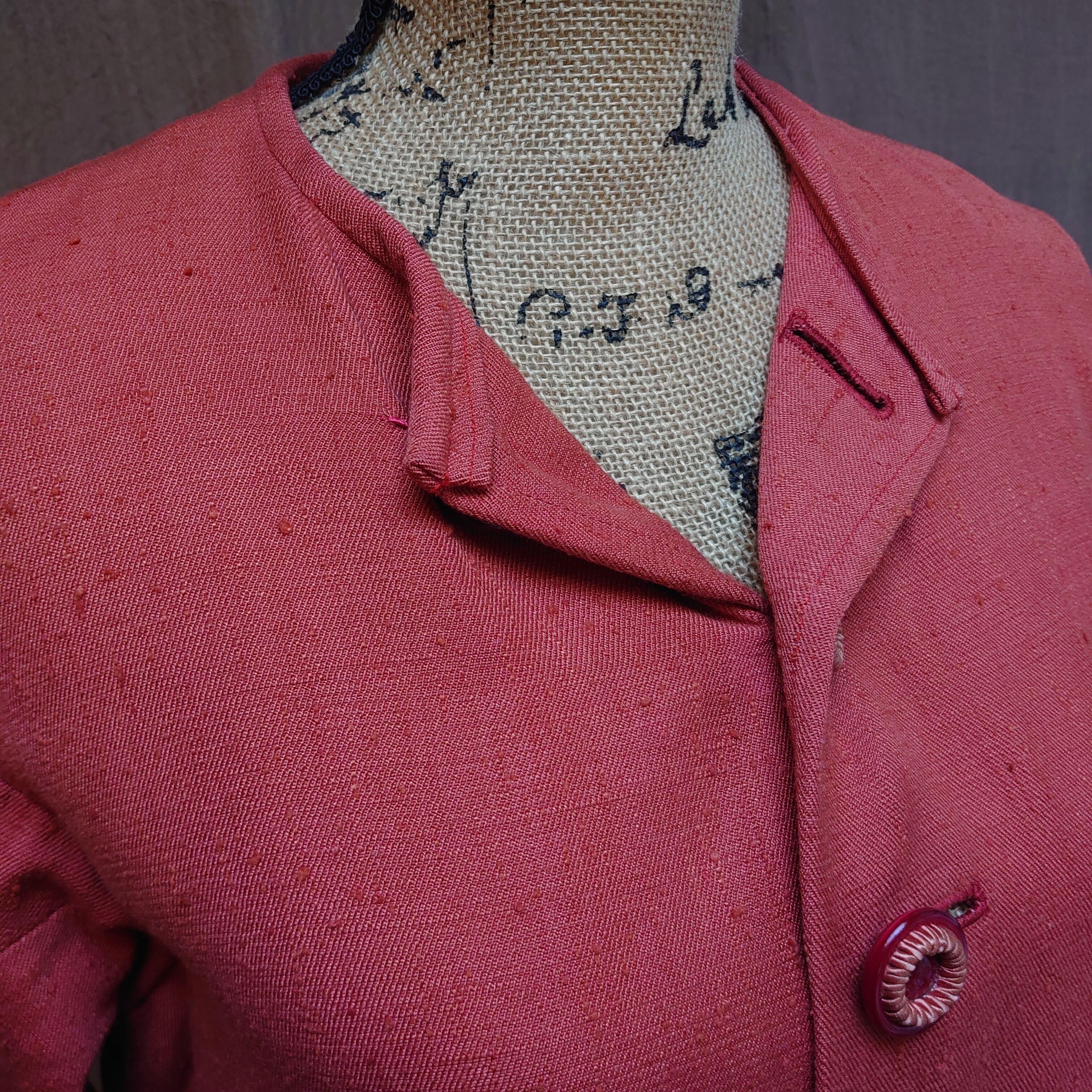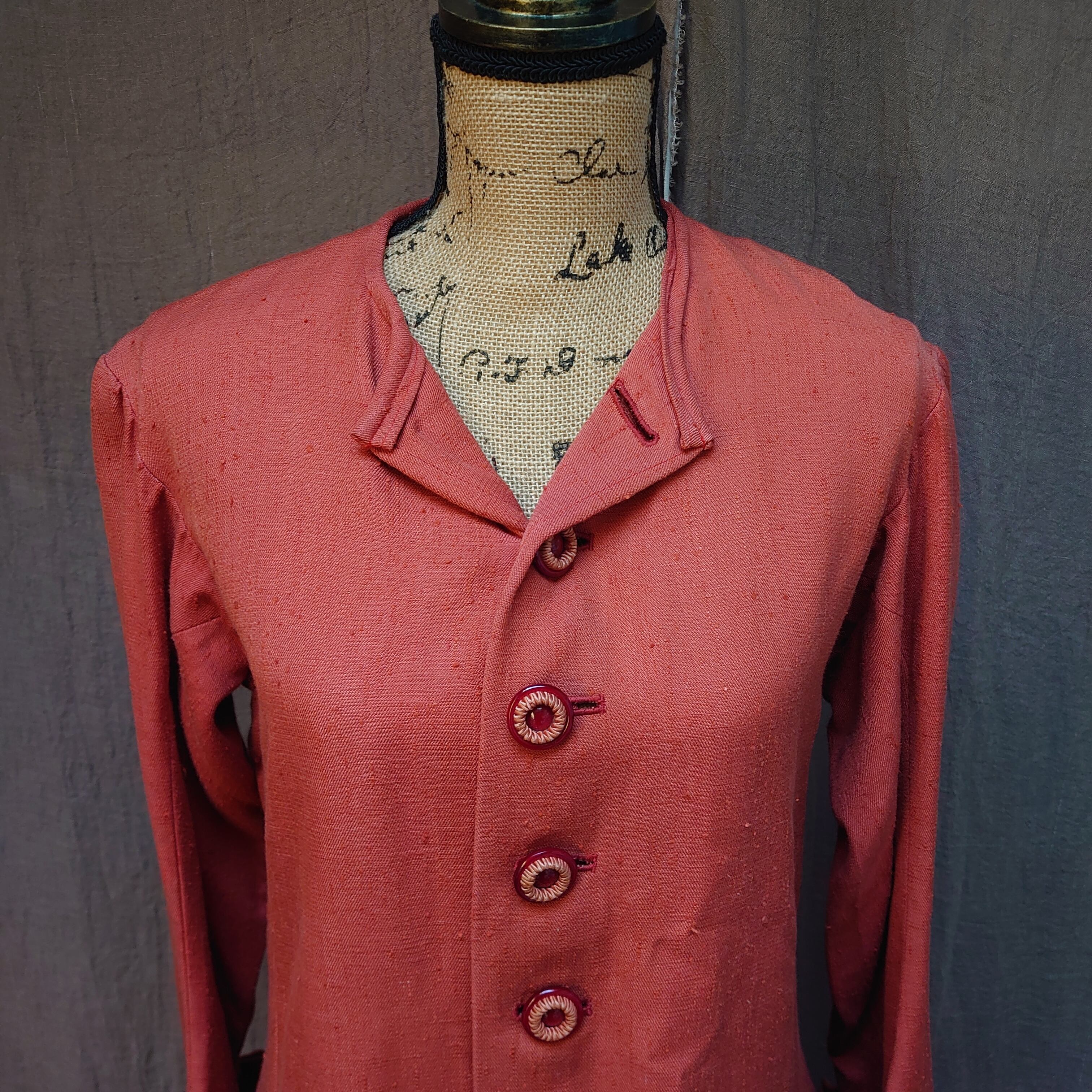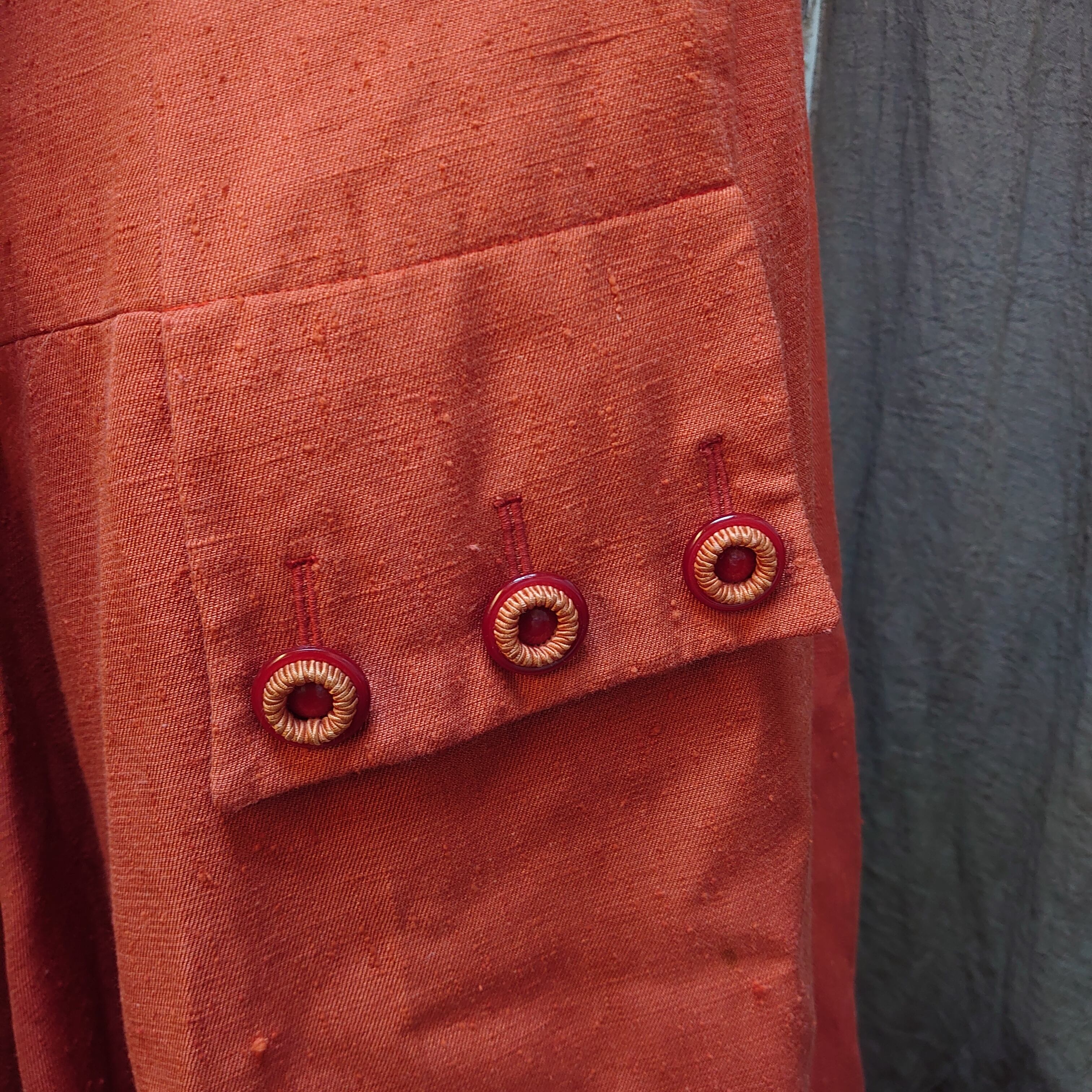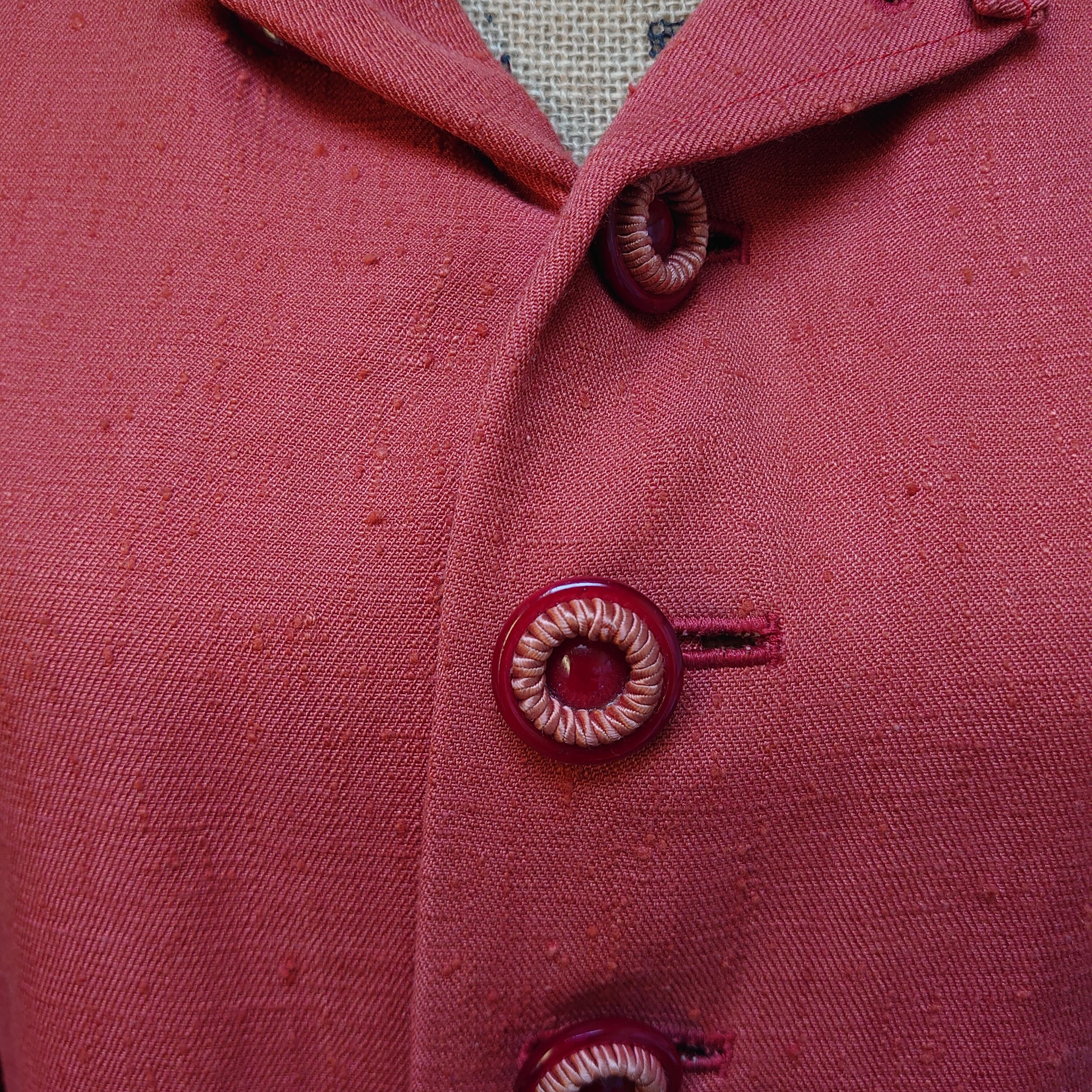 1970s German Vintage linen coral red long coat theater costume 舞台衣装