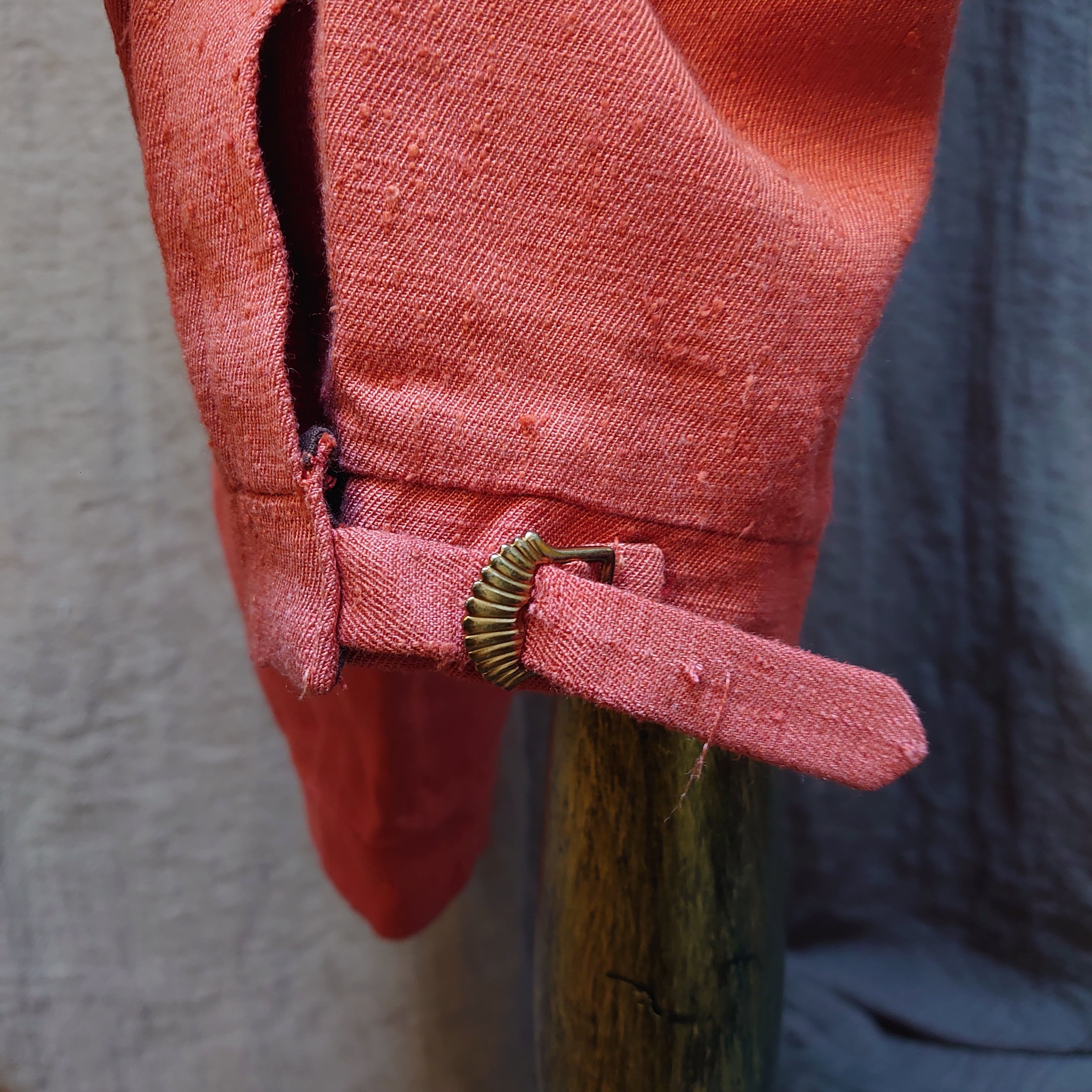1970s German Vintage linen coral red cropped suspender pants theater costume 舞台衣装