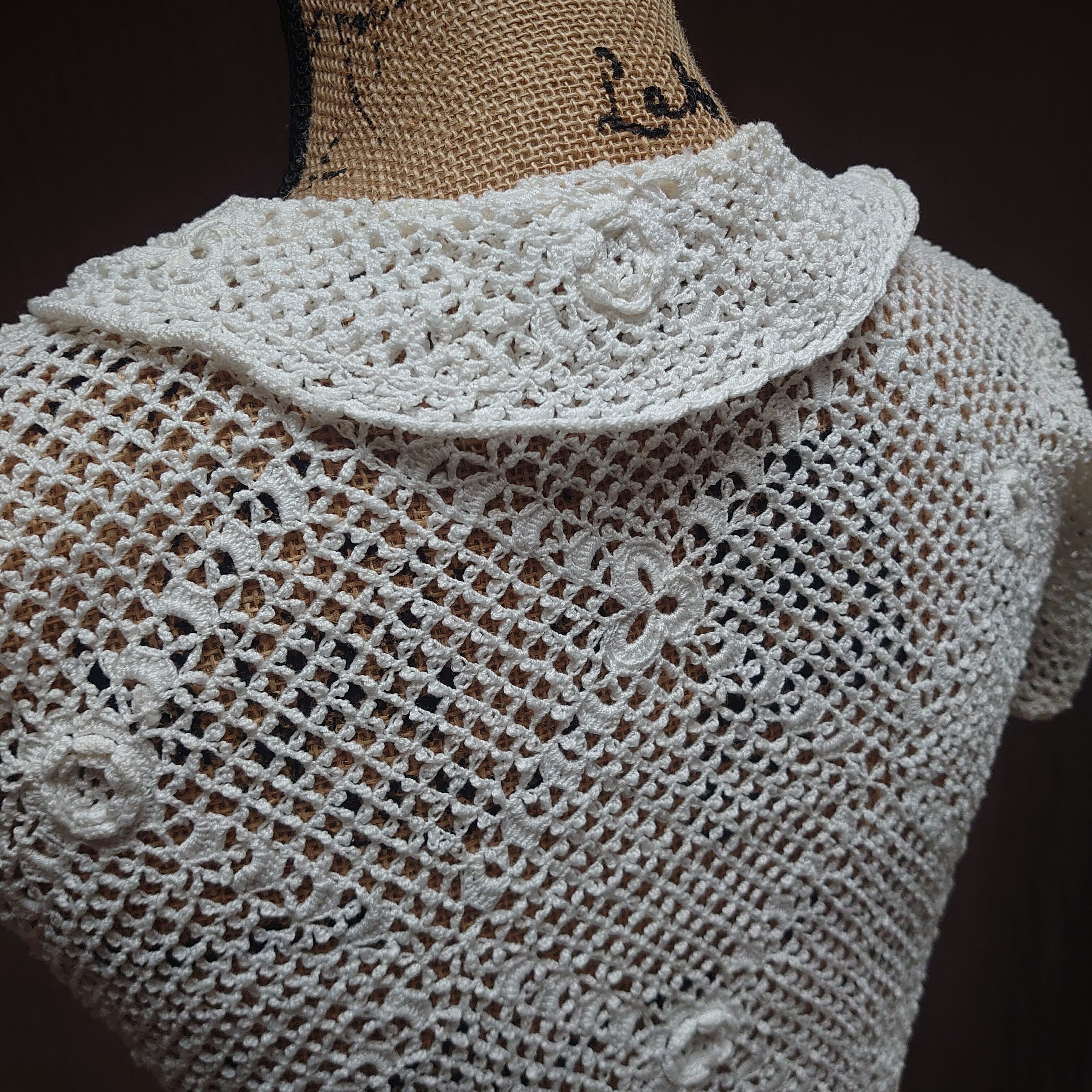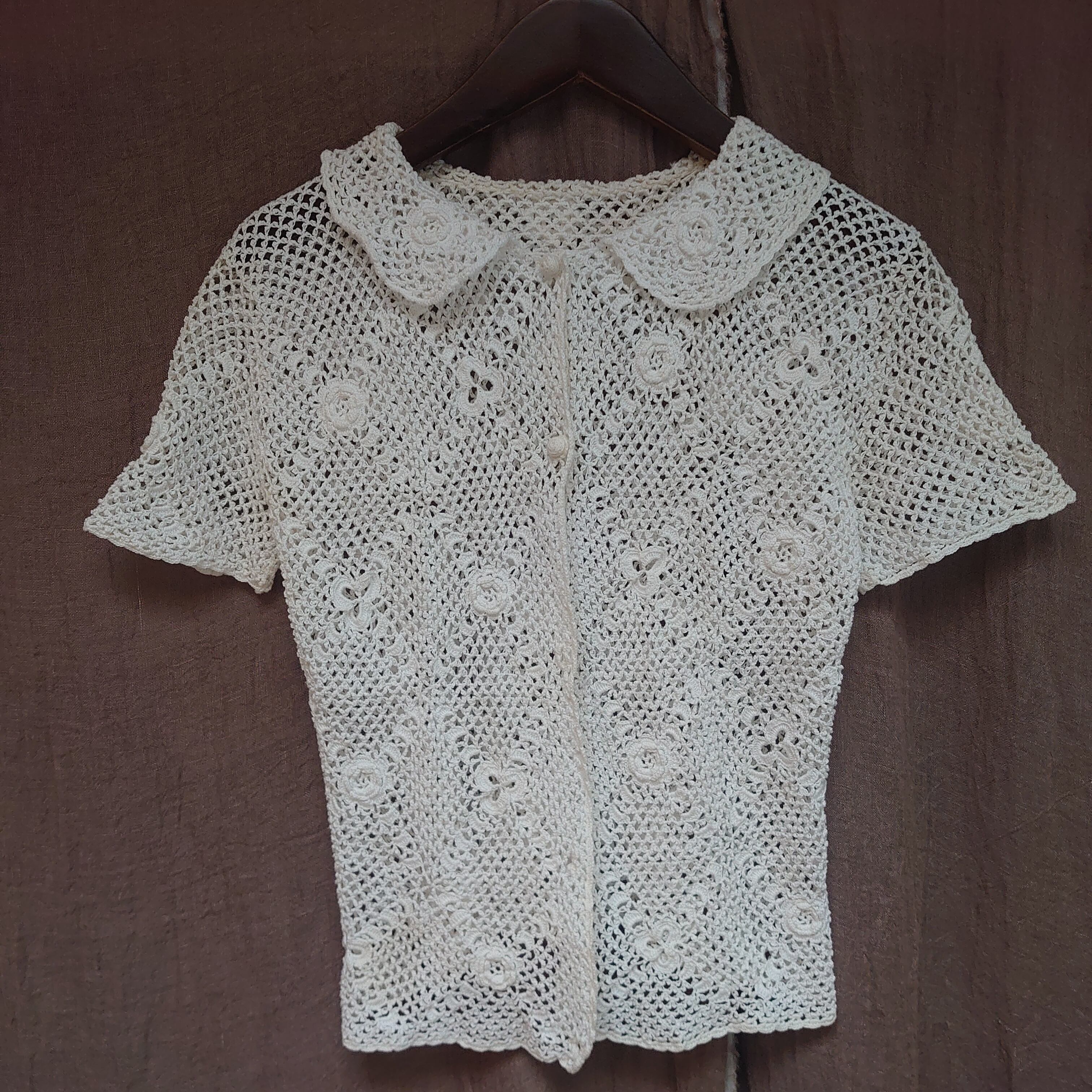 1940's cotton crochet white short sleeve tops blouse
