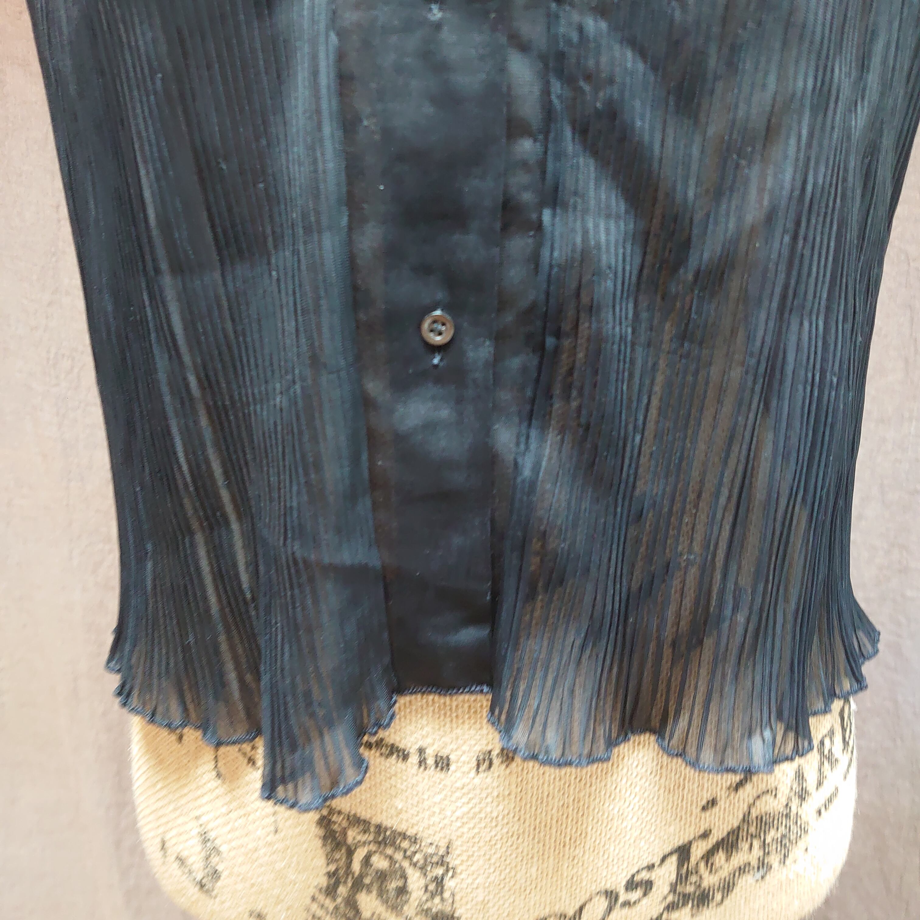 光沢感のある雰囲気が上品なブラウスで、シルク地のような上質な生地が使われています。